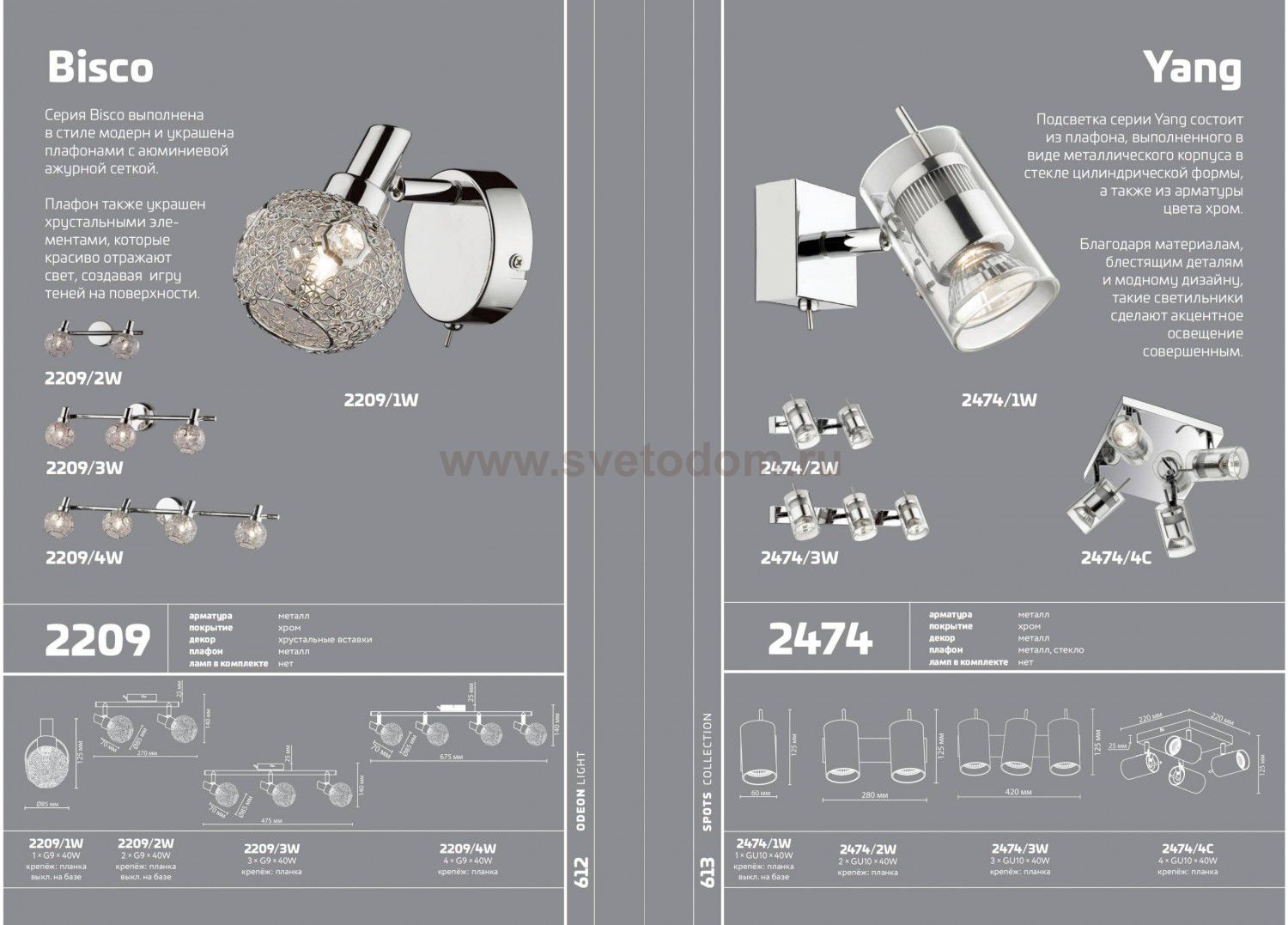 Светильники-споты – это оригинальные изделия с современным дизайном. Они позволяют не ограничивать свою фантазию при выборе освещения для интерьера. Такие модели обеспечивают достаточно качественный свет. Благодаря компактным размерам Вы можете использовать несколько спотов для одного помещения. Интернет-магазин «Светодом» предлагает необычный светильник-спот Odeon light 2209/1W по привлекательной цене. Эта модель станет отличным дополнением к люстре, выполненной в том же стиле. Перед оформлением заказа изучите характеристики изделия. Купить светильник-спот Odeon light 2209/1W в нашем онлайн-магазине Вы можете либо с помощью формы на сайте, либо по указанным выше телефонам. Обратите внимание, что у нас склады не только в Москве и Екатеринбурге, но и других городах России.