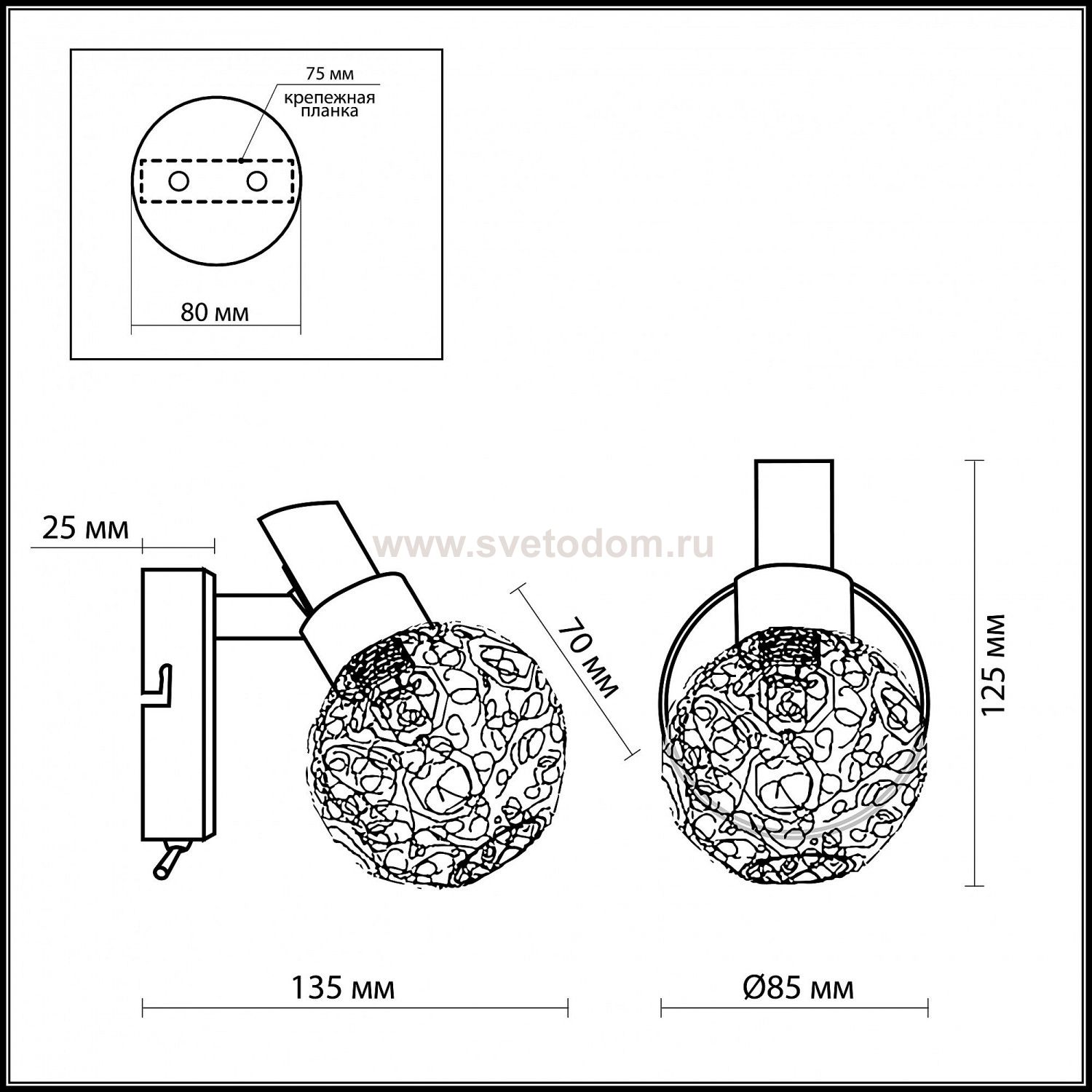 плафон: сферический из алюминиевой решетки с хрустальными элементами, арматура: металл, декор: хрусталь Материал плафона