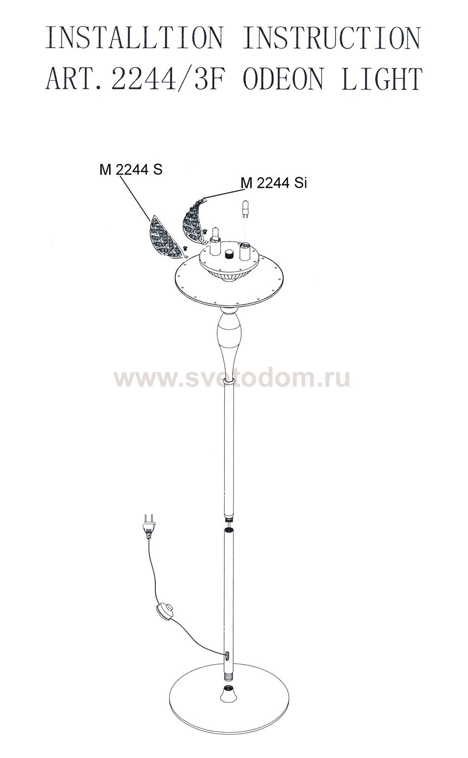 Удивительная модель 2244/3f от фабрики Odeon light (Италия) серии LOTUS представляет собой торшер выполненный по технически выверенным чертежам и эскизам итальянских дизайнеров. Подходит как для бытового, так и для общественного использования со стандартными и диодными лампами.