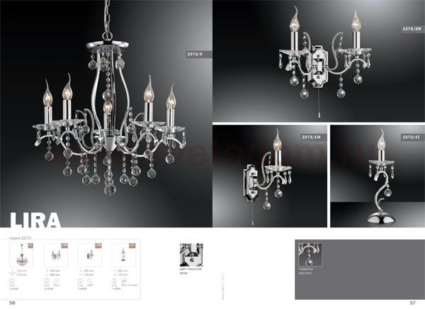 Дополнительно рекомендуем посмотреть другие хрустальные люстры и светильники из данной серии. Модель - люстры Odeon Light 2273/5 в хроме Lira замечательно впишется в задуманный Вами интерьер зала, гостиной или спальни. Купите хрустальную люстру уже сегодня и Вы поймете превосходство светильников перед другими направлениями освещения. Основное превосходство хрусталя - это отражение и преломление света во всем пространстве, а отсутствие абажуров не съест получаемый световой поток от горящих ламп!