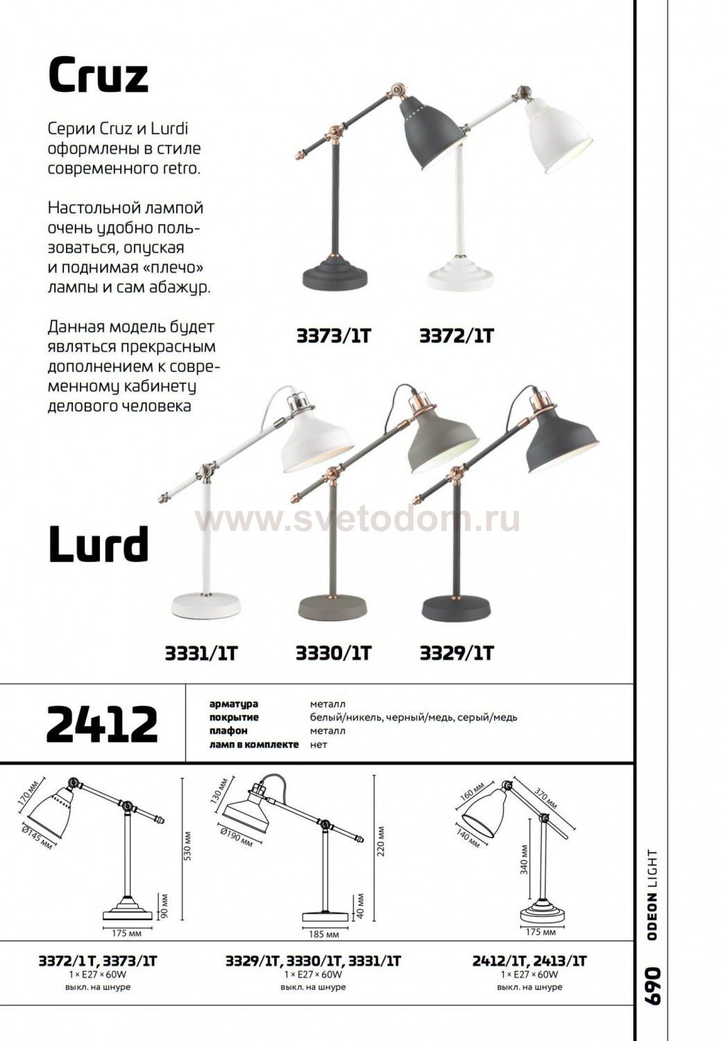691 Отзывы Настольная лампа Odeon light 2412/1T CRUZПока нет отзывов об этом товаре, напишите и он обязательно появится после модерации! Оставить свой отзывПохожие товары Другие товары магазина Фото