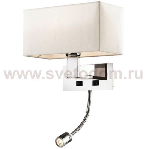 Бра 2421 / 1A линии Norte выполнено в стиле модерн. Блестящий хромовый цвет, строгие геометрические формы, а также стильный белый абажур прямоугольной формы гармонично сочетаются и создают незабываемый эффект. Имеется отдельная лампа для чтения, обеспечивающая точечный свет. Цоколь E27+LED. Мощность 1*60W+1*1W. Светодиодная лампа в комплекте.