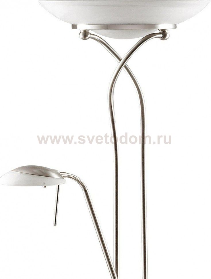 Торшер 2486 / F линии Axton выполнен в стиле классика и состоит из металлического основания цвета никель, двух плафонов: верхнего из белого матового стекла и бокового из матового стекла. Имеется стеклянный столик, прикрепленный к основанию.У верхнего и бокового света есть отдельные выключатели. Цоколь R7s / G9. Мощность 300W+40W. Нет ламп в комплекте