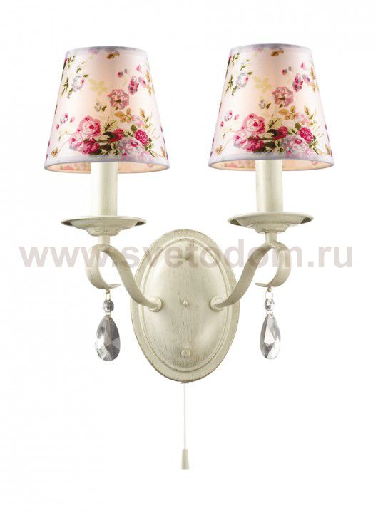 Настенный светильник Odeon light 2533/2W станет прекрасным дополнением к световому освещению комнаты в стиле «флористика»! Округлые, «плавные» линии и «завитки» арматуры «нежного» белого оттенка «завершаются» двумя трапециевидными плафонами из текстиля с ярким цветочным принтом, создавая изящный, невероятно красивый образ. Хрустальные подвески придают конструкции уточенный и «благородный» вид. Светильник идеально «впишется» в спальню или гостиную, наполнив ее романтикой и гармонией. Чтобы интерьер выглядел «цельным» и совершенным, используйте в нем всю коллекцию Odeon light 2533, включая люстру и настольную лампу.