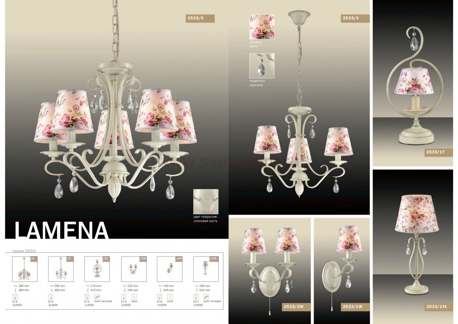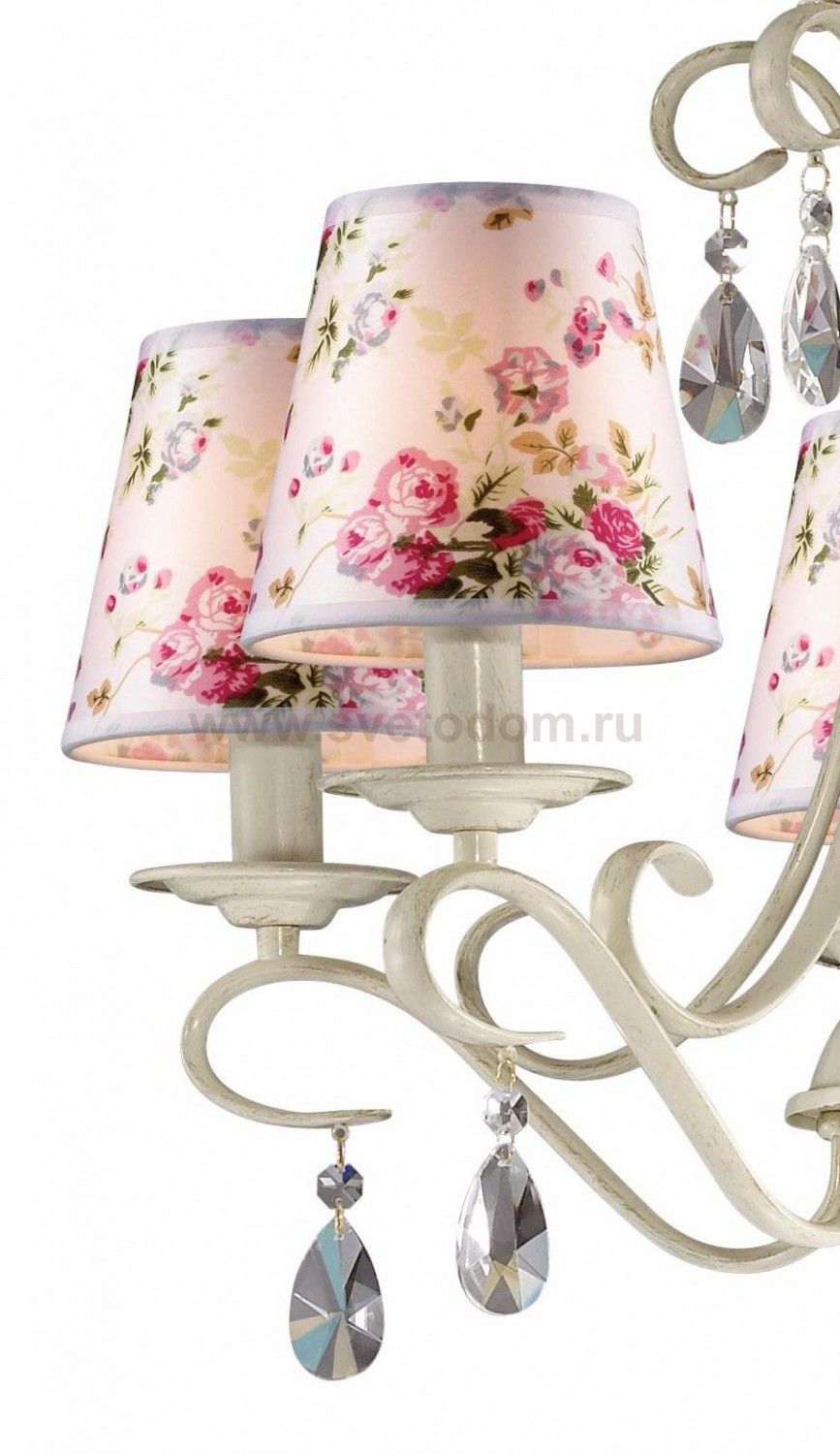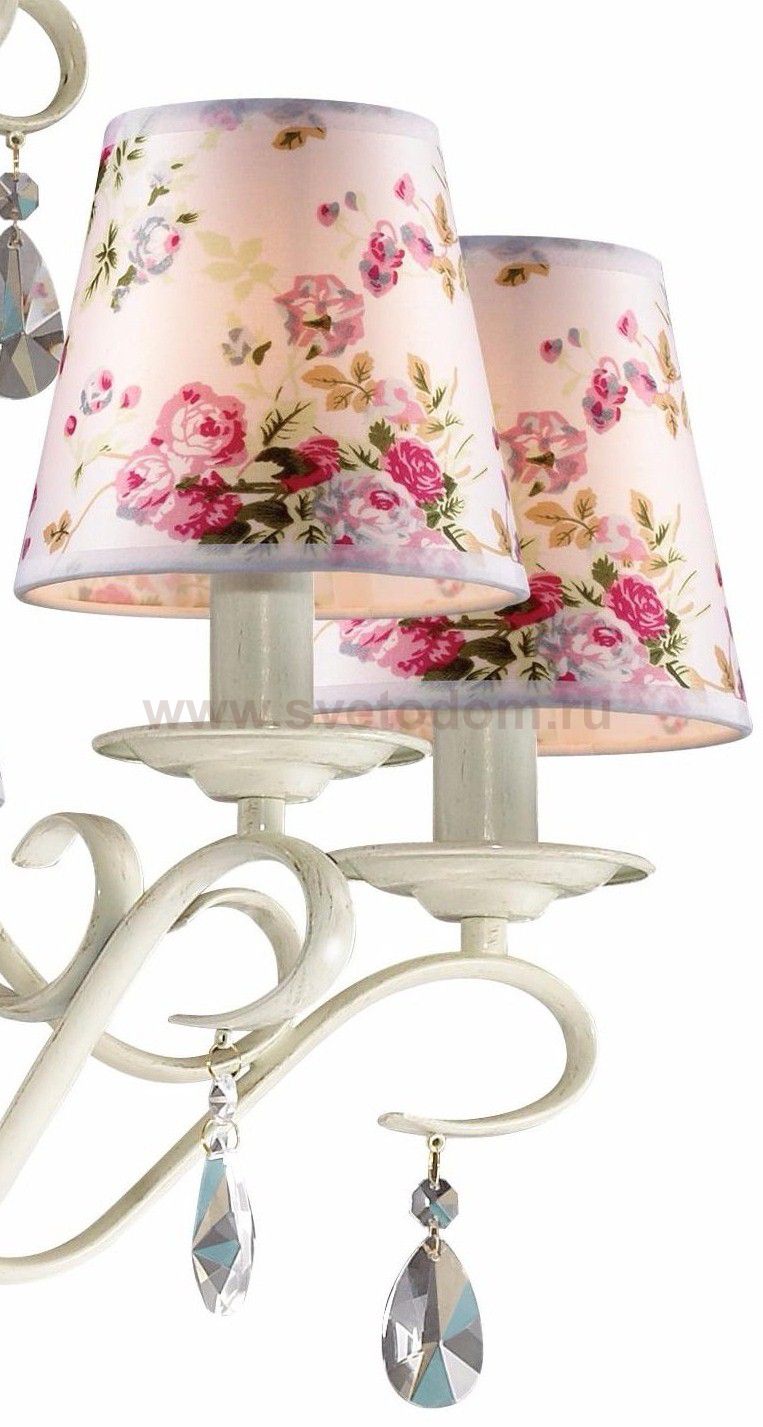 плафон: абажур из ткани с цветочным рисунком в розовых тонах, арматура: металл, декор: металлический декор, хрусталь Материал плафона