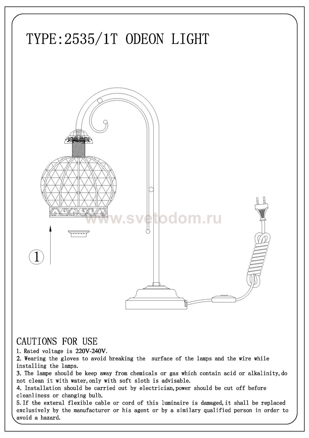 Настольная лампа – это не просто источник дополнительного освещения, но и оригинальный элемент декора. Его можно установить в спальне, гостиной, кабинете и других комнатах. Интернет-магазин «Светодом» предлагает настольные лампы разных стилей по доступным ценам. Благодаря большому ассортименту Вы обязательно найдете в нашем каталоге именно ту модель, которую искали. Настольная лампа Odeon light 2535/1T – прекрасный вариант для завершения интерьера. Ее можно включить одновременно с люстрой для более яркого освещения или без нее для создания уютной атмосферы, настраивающей на отдых. Купить настольную лампу Odeon light 2535/1T Вы можете с помощью виртуальной «Корзины» или по контактным номерам, указанным на сайте.