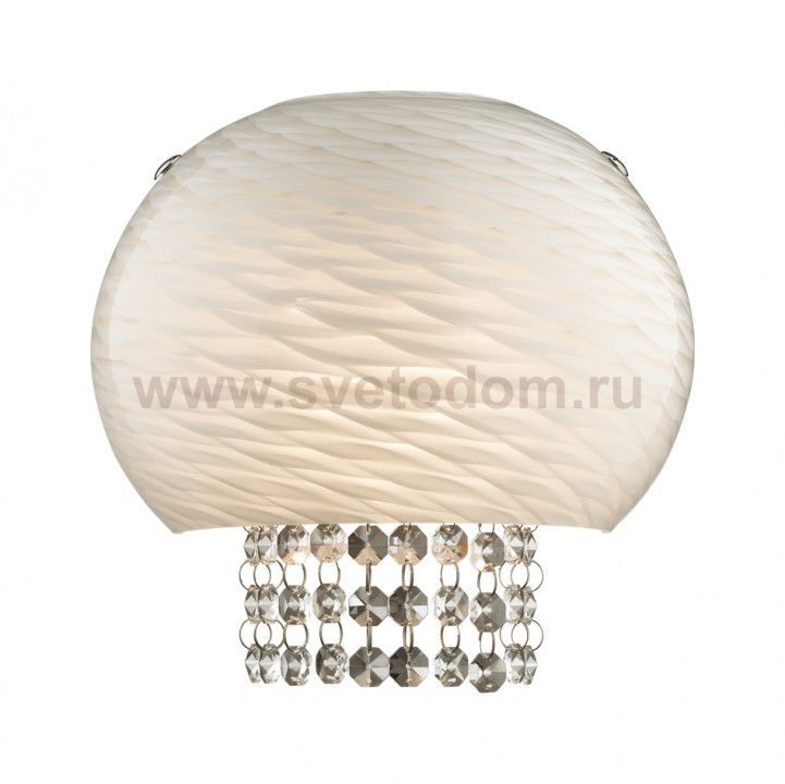 плафон: из белого стекла с абстрактным орнаментом, арматура: металл, декор: хрусталь Материал плафона