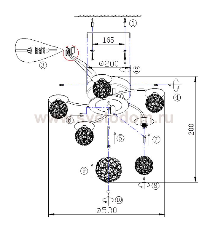 Максимальная потребляемая мощность лампы, которую можно использовать в люстре.