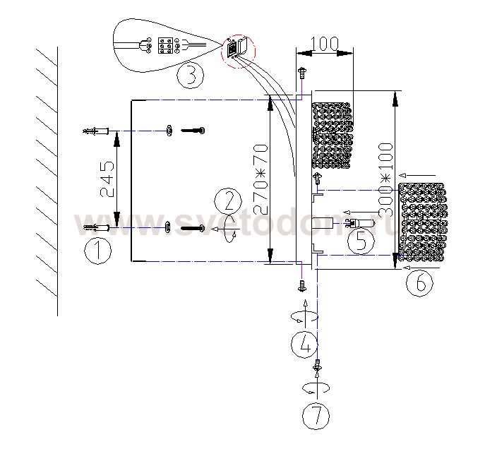 Максимальное расстояние от поверхности установки, в основном от стен и указывается в милиметрах.