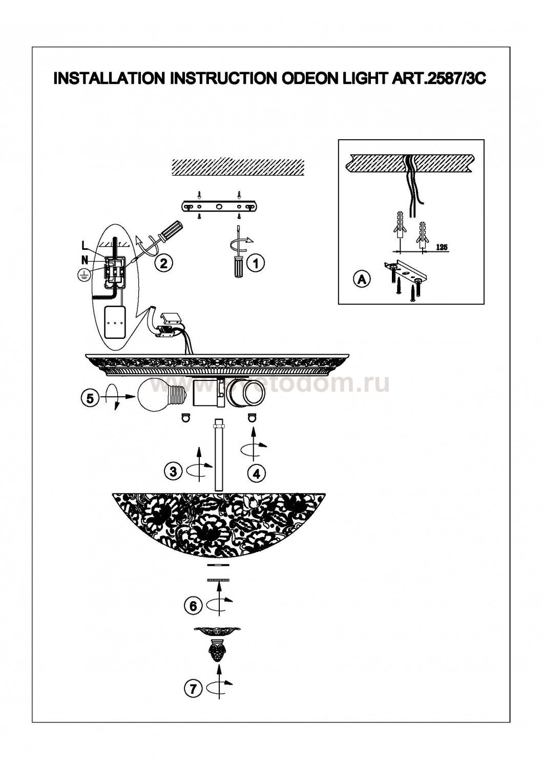 плафон: стеклянный рассеиватель с орнаментом, арматура: металл, декор: металлический декор Комментарий