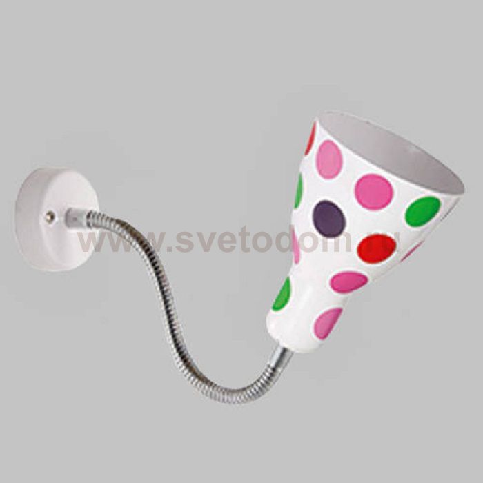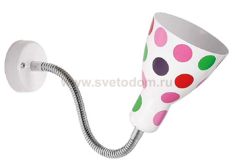 Храктерная особенность артикула 2594/1W: Бра 2594/1W серии Pika оформлена в современном стиле. Светильник состоит из металлического плафона белого цвета с веселым рисунком в цветной горошек и метллической арматуры. Данная модель всегда поднимет настроение даже в самые ненастные дни. Цоколь E27. Мощность 1x40W. Нет ламп в комплекте.