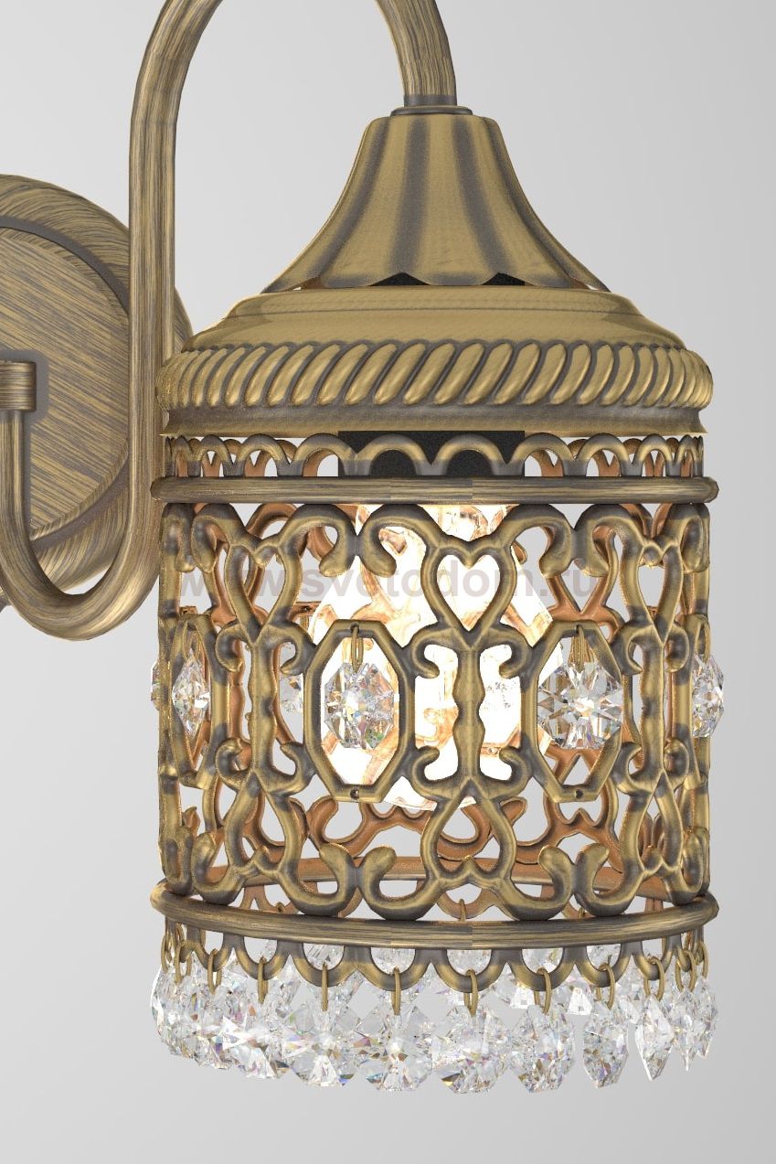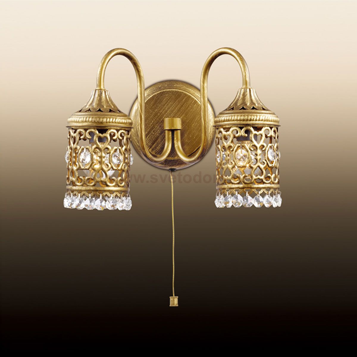 Роскошное бра 2641/2W состоит из металлического каркаса цвета "состаренной" бронзы. Красочные узоры, а также высококачественный хрусталь, обрамляющий основание каркаса, делают эту модель очень экзотичной. Цоколь E14. Мощность 1*40W. Нет ламп в комплекте.