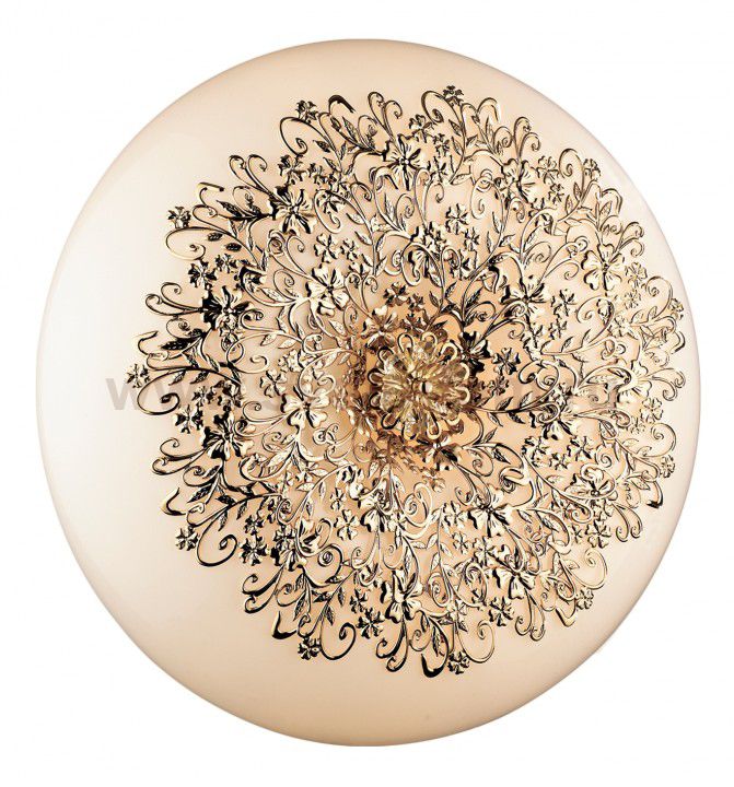плафон: рассеиватель из белого стекла с декором, арматура: металл, декор: металлический декор в виде растительного орнамента Комментарий