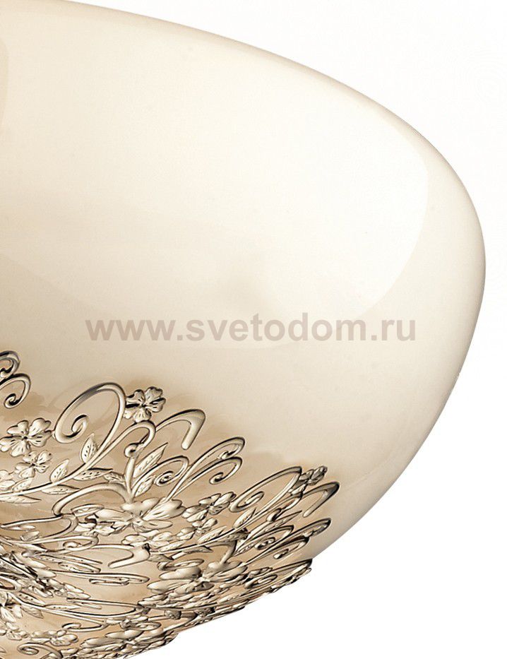 плафон: рассеиватель из белого стекла с декором, арматура: металл, декор: металлический декор в виде растительного орнамента Комментарий