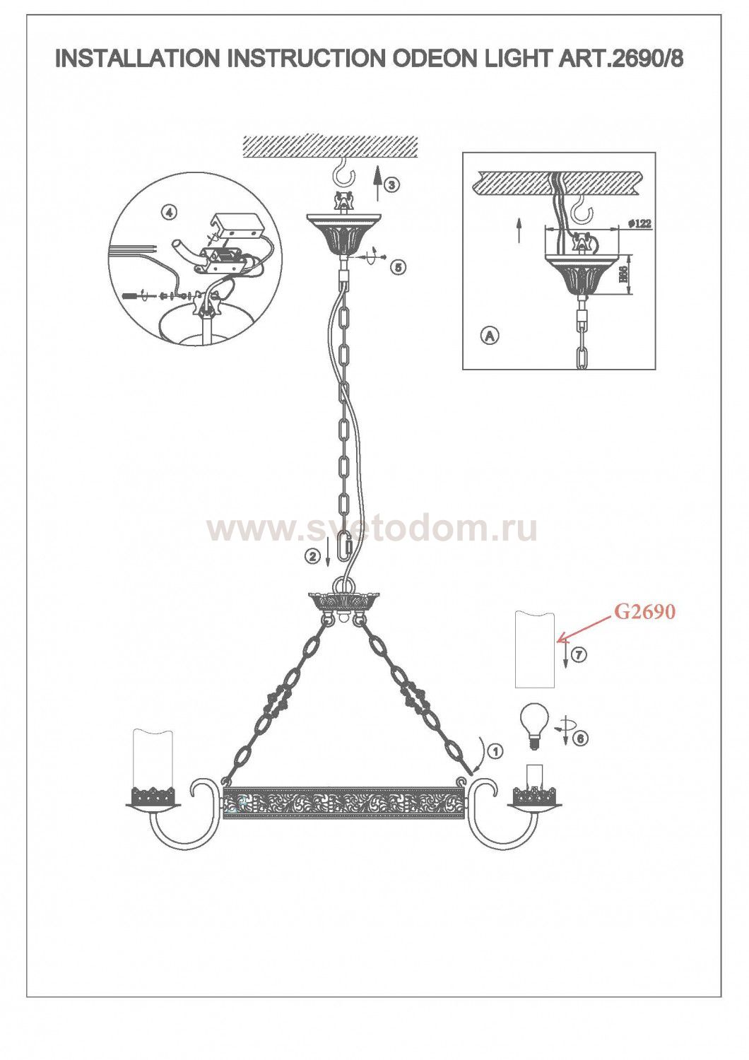 Классическая люстра 2690 / 8 в викторианском стиле идеально впишется как в загородные дома в стиле Шале, так и в современные интерьеры. Роскошно обрамленное основание люстры, ажурные цепи и подсвечники, в сочетании с белыми матовыми плафонами в виде оплавившихся свечей, станут настоящим украшением помещения. Цоколь E14. Мощность 8*60W.