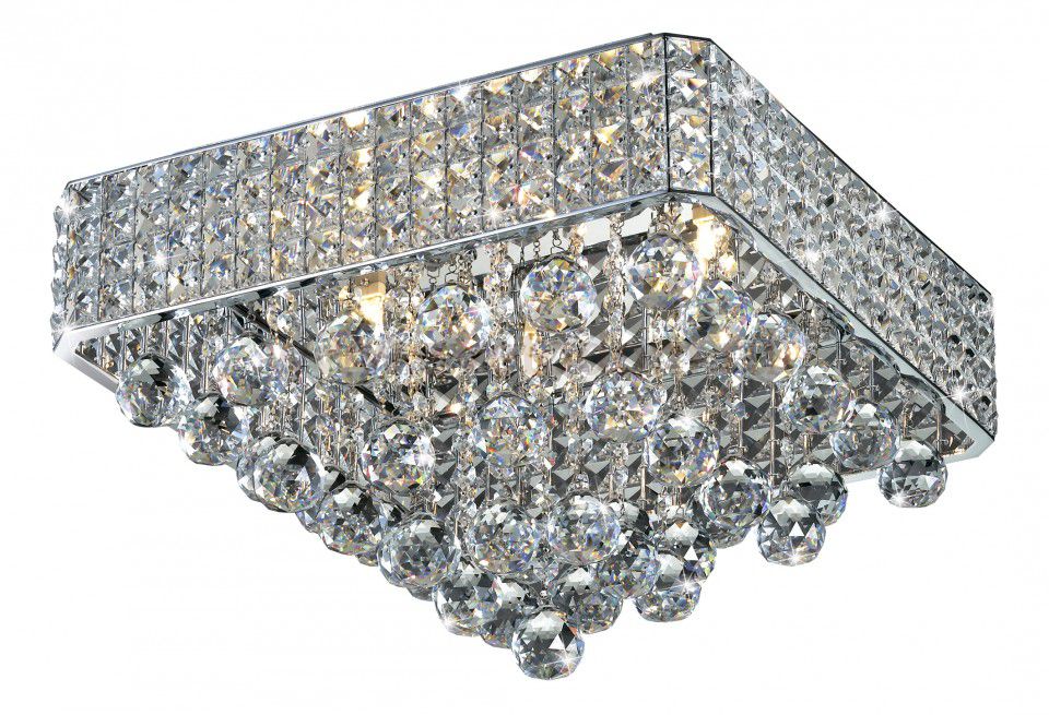 плафон: из рядов с хрустальными квадратными элементами и подвесками из сферического хрусталя, арматура: металл, декор: хрусталь, металл Комментарий