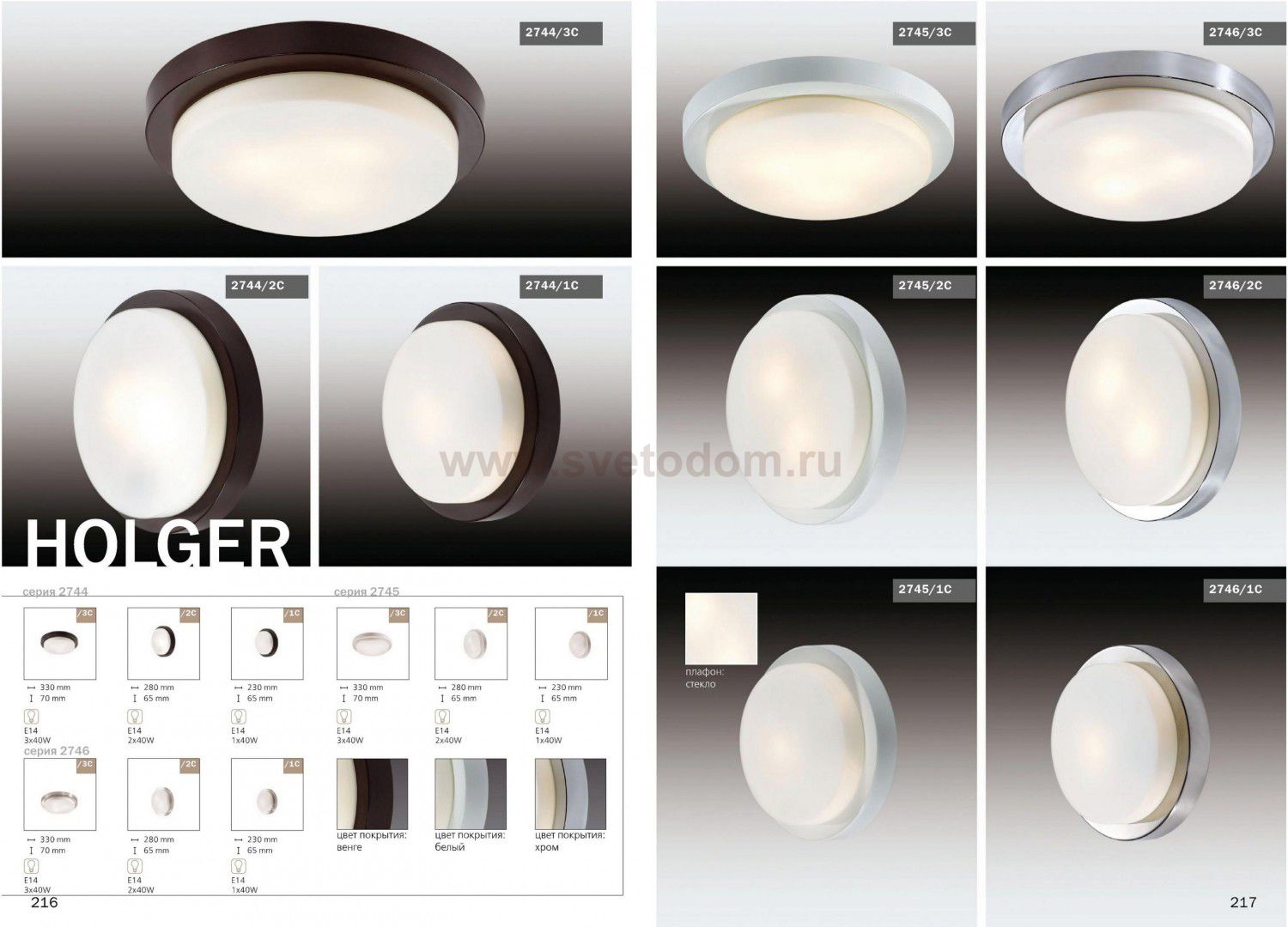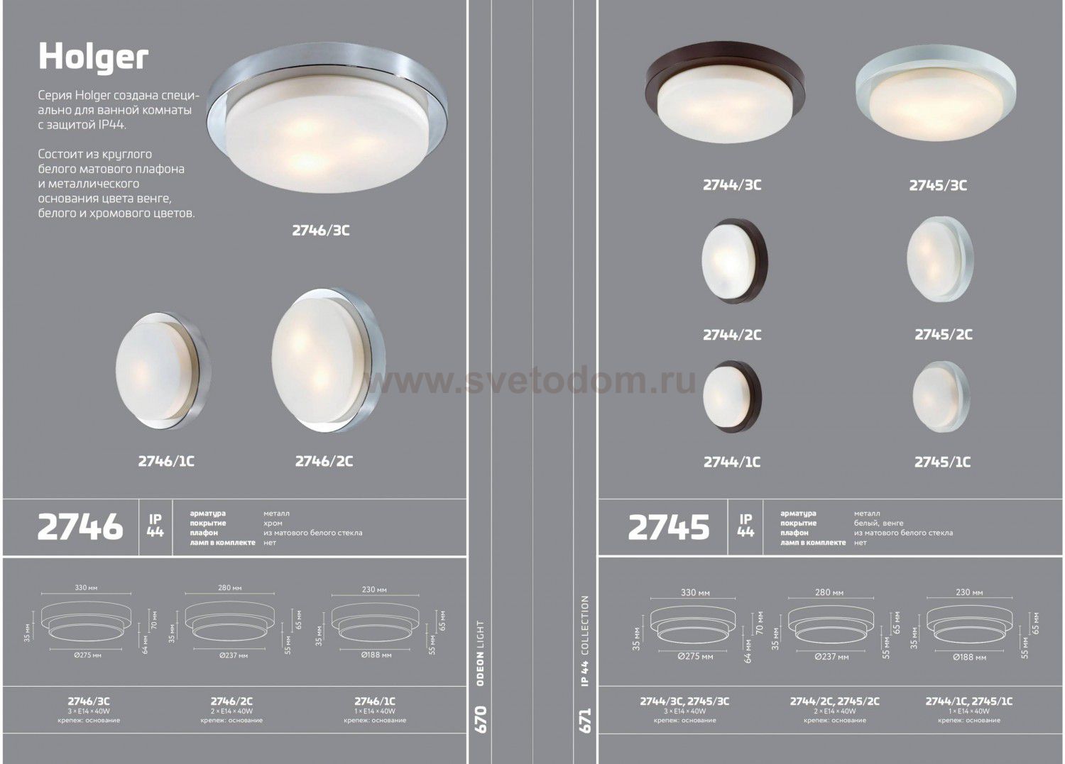 Настенно-потолочный светильник 2744/1C линии Holger создан специально для ванной комнаты с защитой IP44. Состоит из круглого белого матового плафона и металлического основания цвета венге. Цоколь E14. Мощность 1*40W. Нет ламп в комплекте.