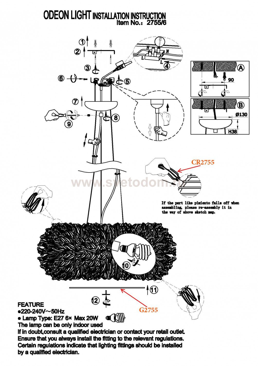 Люстра 2755 / 6 линии Esma имеет особый, индивидуальный характер. Оригинальность люстре придает необычный плафон, выполненный из множества декоративных элементов. Дно люстры прикрыто матовым стеклом, мягко рассеивающим свет. Цоколь E27. Мощность 6*20W. Нет ламп в комплекте.