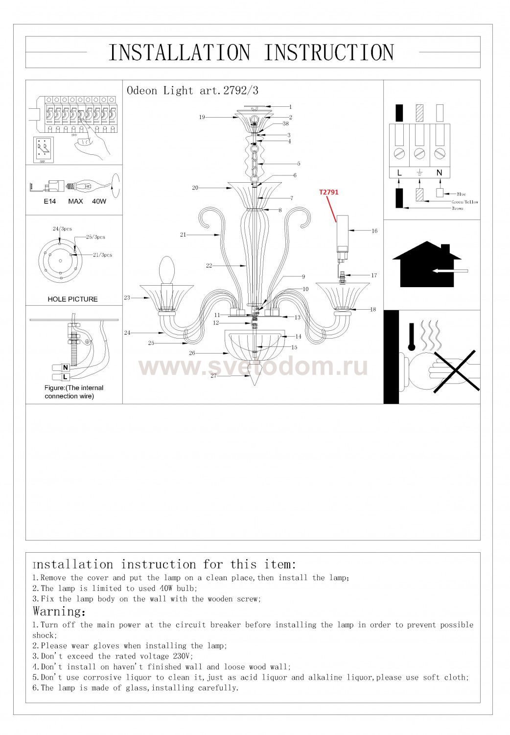 Практически для каждой люстры производитель указывает максимальную мощность лампочки. Это связано с тем, что при работе лампы выделяется значительное количество тепла. Если установить лампу большей мощности, то это может привести к деформации и порче люстры, разрушению патрона.