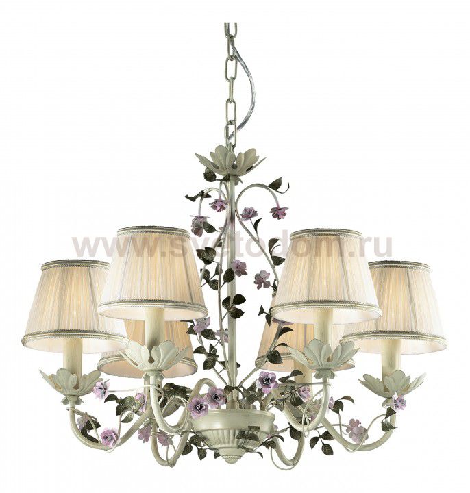 Люстра 2796 / 6 линии Tender в красивом бежево - оливковом цвете изящно декорирована мелкими фиолетовыми цветочками и нежно - зелеными лепестками. Прекрасно дополняют люстру выполненные из тонкой органзы абажуры молочного цвета. Цоколь E14. Мощность 6*60W. Нет ламп в комплекте.
