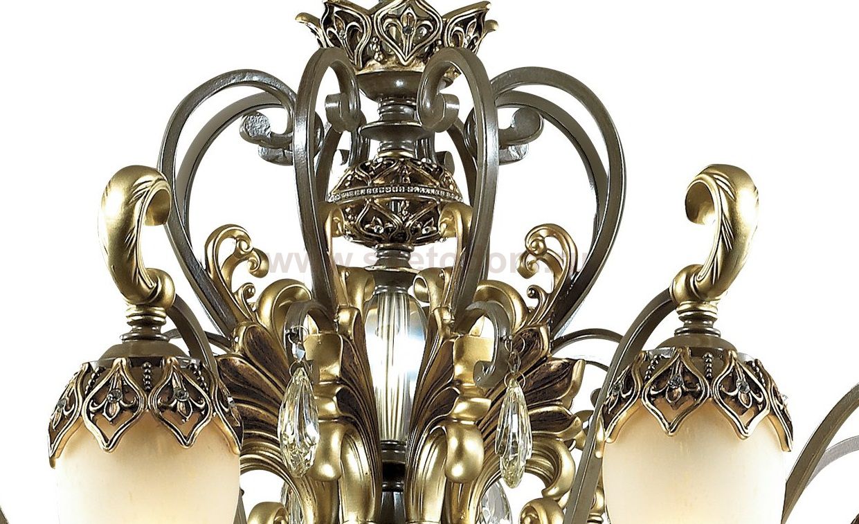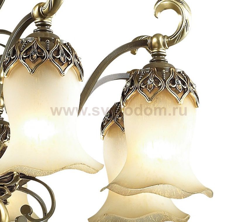 Люстра 2802 / 8 линии Safira роскошна в каждом декоративном элементе. Богатство и изящество лепных элементов, украшающих основание, резных розеток, которыми обрамлены фигурные плафоны из матового стекла, переливающийся хрусталь, а также благородный цвет античной бронзы и золота - все это делает люстру необычайно величественной, изысканной и роскошной. Цоколь E27. Мощность 8*60W. Нет ламп в комплекте.