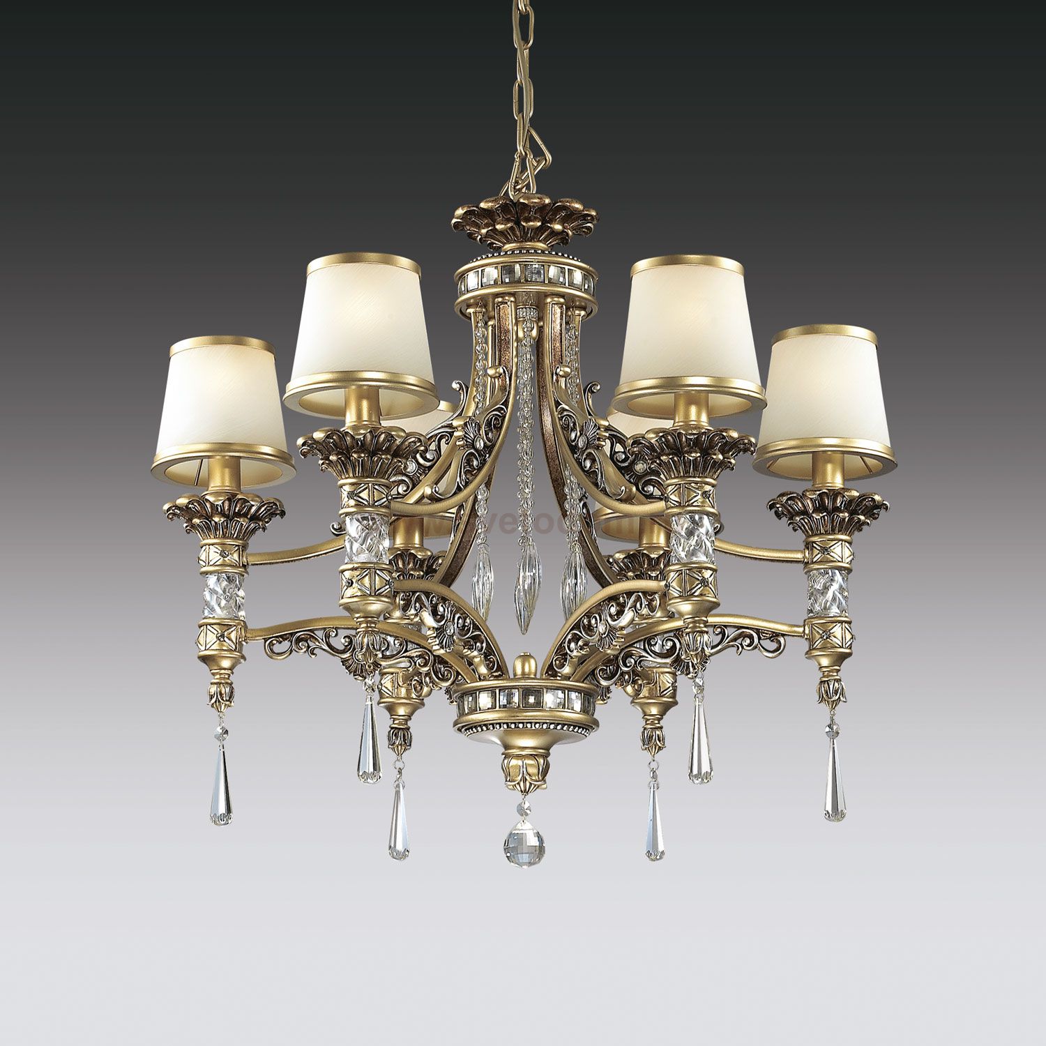 Храктерная особенность артикула 2803/6: Люстра 2803/6 серии Peta покрыта бронзовым цветом, основание люстры украшено лепниной, хрустальными вставками и хрустальными подвесками высшего качества, матовые плафоны из стекла молочного цвета обрамлены золотой каймой. Люстра украсит любой интерьер и будет смотреться поистине роскошно и по-королевски. Цоколь E14. Мощность 6*60W. Нет ламп в комплекте.