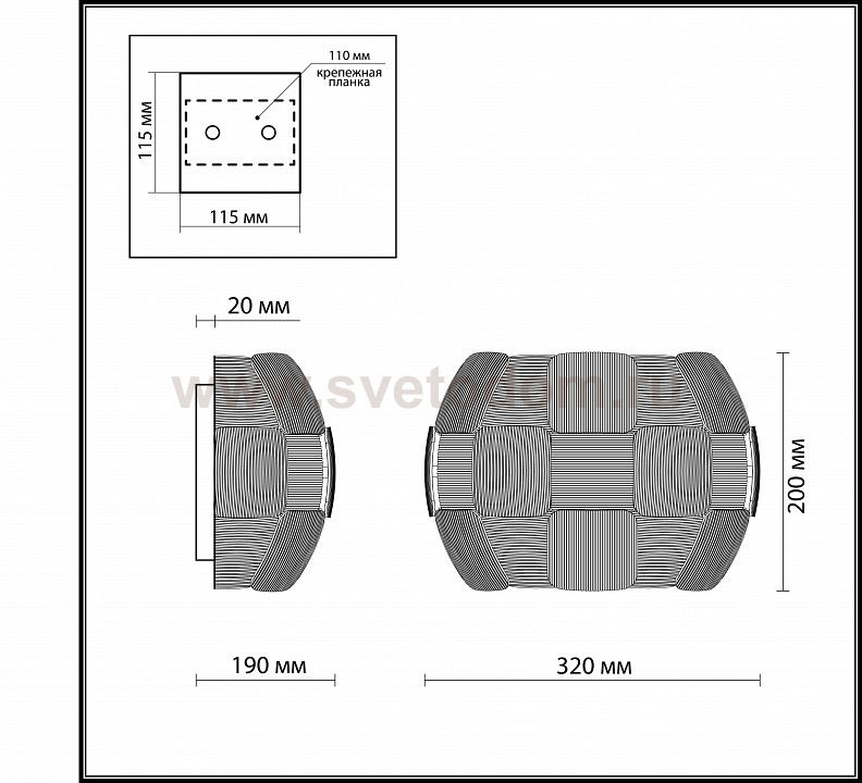 плафон: полимер с рифленой поверхностью, арматура: металл, декор: металл Материал плафона