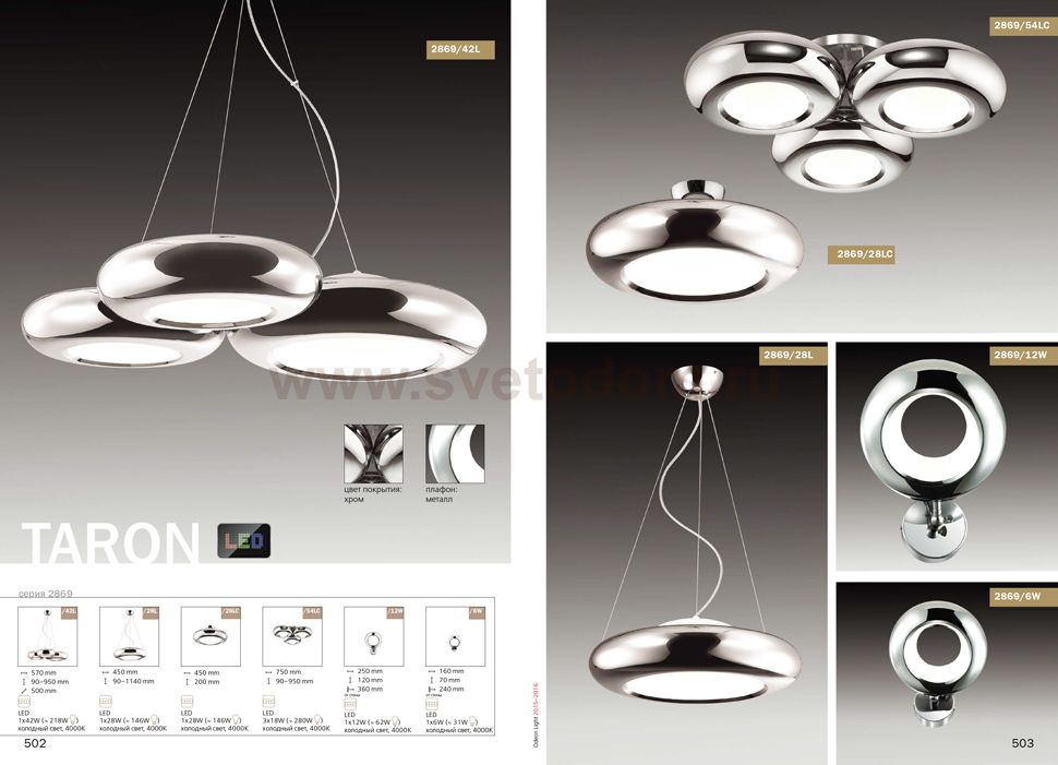 В данном разделе интернет-магазина Светодом Вы сможете купить для освещения дома грациозную модель - Люстра 2869/42L серии Taron выполнена в стиле Modern. Люстра изготовлена из металла с хромовым покрытием. Необычный, современный дизайн люстры станет прекрасным дополнением вашего интерьера. LED. Мощность 1х28W 12V. Тип крепления "планка". Нет ламп в комплекте.