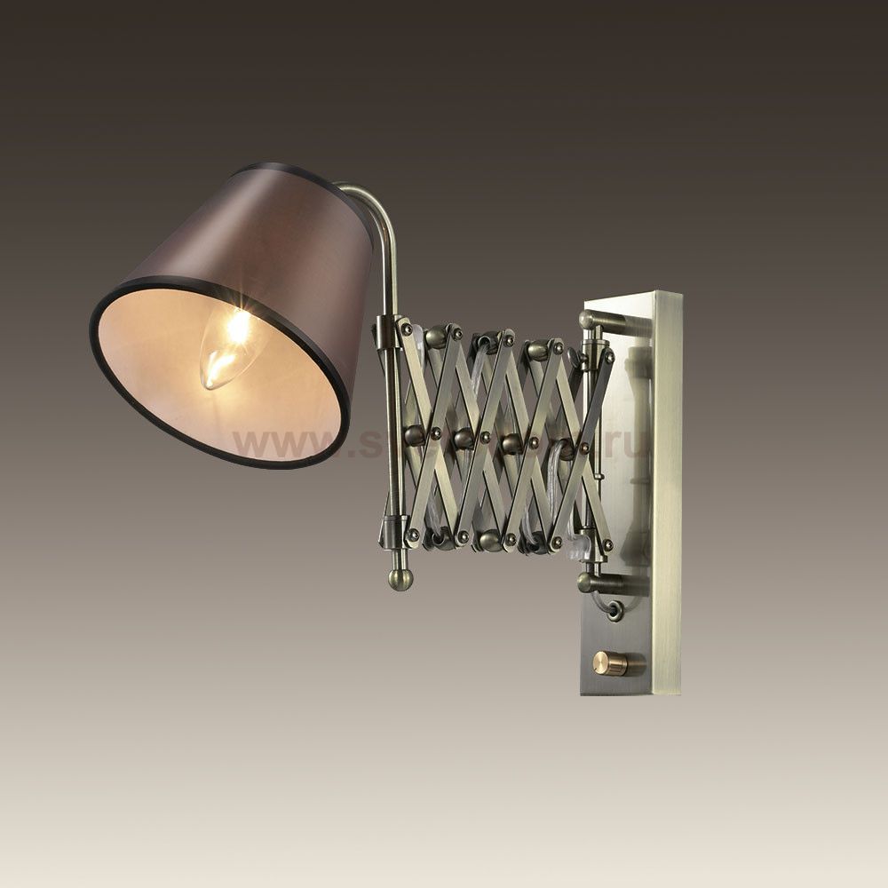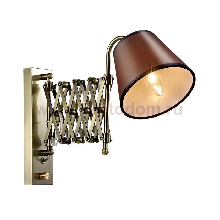 Бра 2876 / 1W линии Lark выполнен в бронзовом цвете, плафон из ткани. В комплект бра входит раздвижной держатель с диммером. Цоколь Е14. Мощность 1х40W. Нет ламп в комплекте.