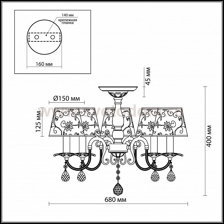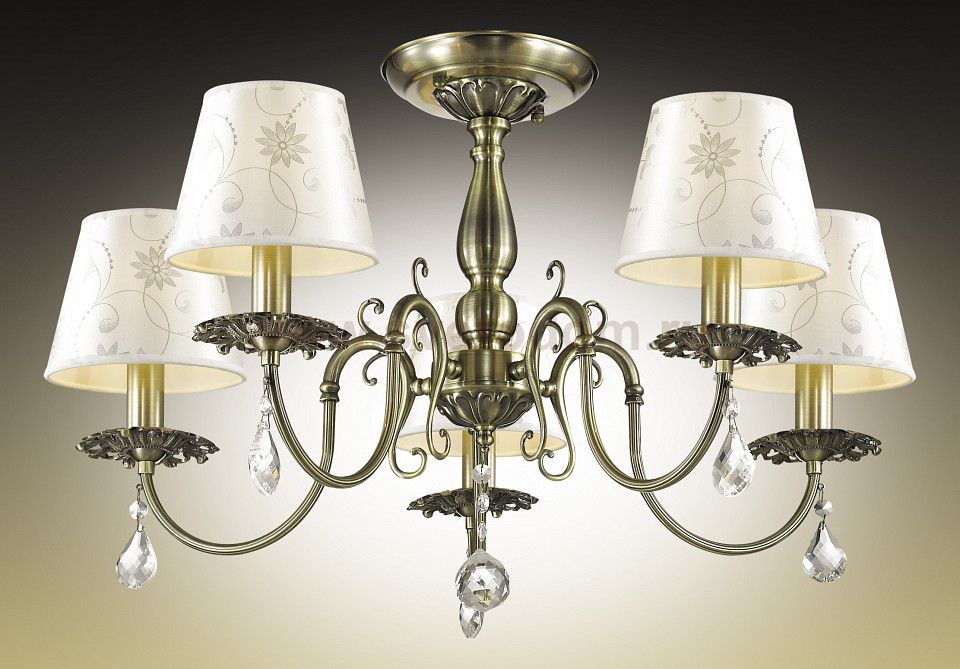 плафон: ткань с орнаментом, арматура: металл, декор: металлические декоры, хрусталь Материал плафона