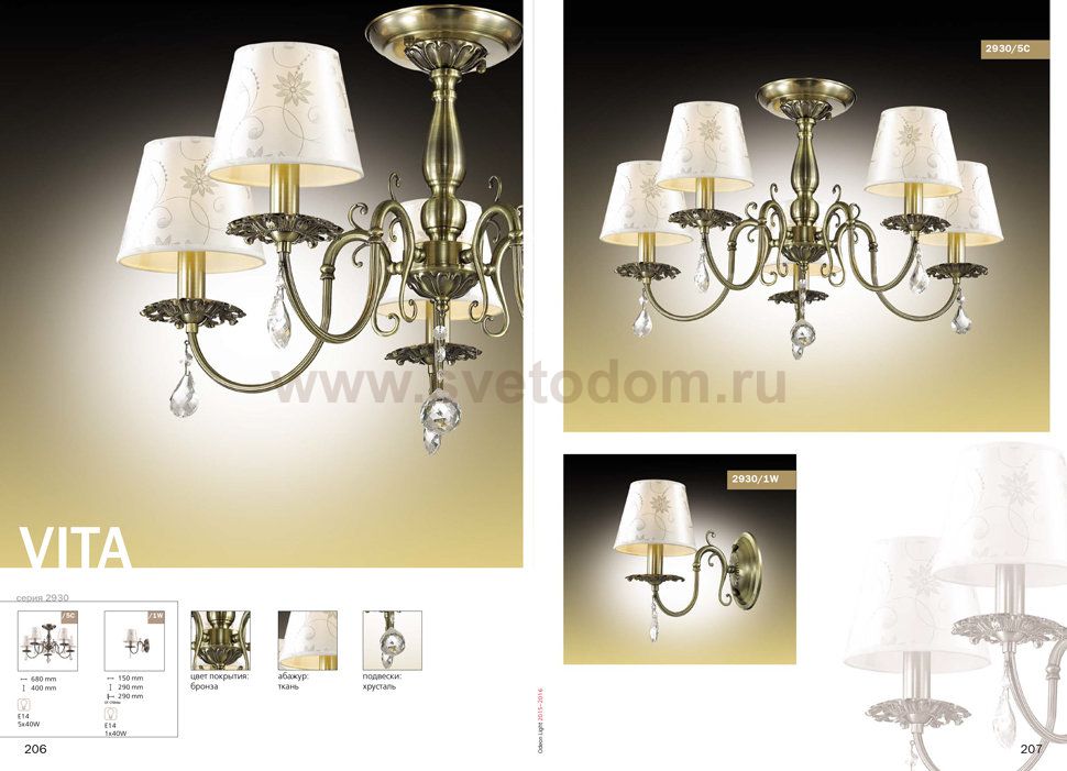В данном разделе интернет-магазина Светодом Вы сможете купить для освещения дома грациозную модель - Люстра 2930/5С серии Vita выполнена в бронзовом цвете. Светлый тканевый абажур потолочной люстры украшен ажурным рисунком, декоративные элементы выполнены в виде хрустальных подвесок. Цоколь Е14. Мощность 5х40W. Нет ламп в комплекте.