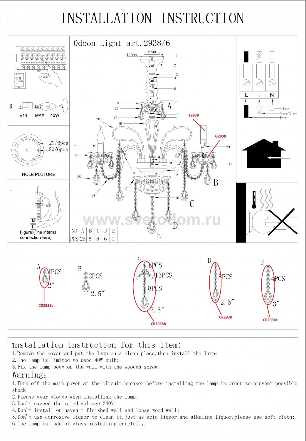 Практически для каждой люстры производитель указывает максимальную мощность лампочки. Это связано с тем, что при работе лампы выделяется значительное количество тепла. Если установить лампу большей мощности, то это может привести к деформации и порче люстры, разрушению патрона.