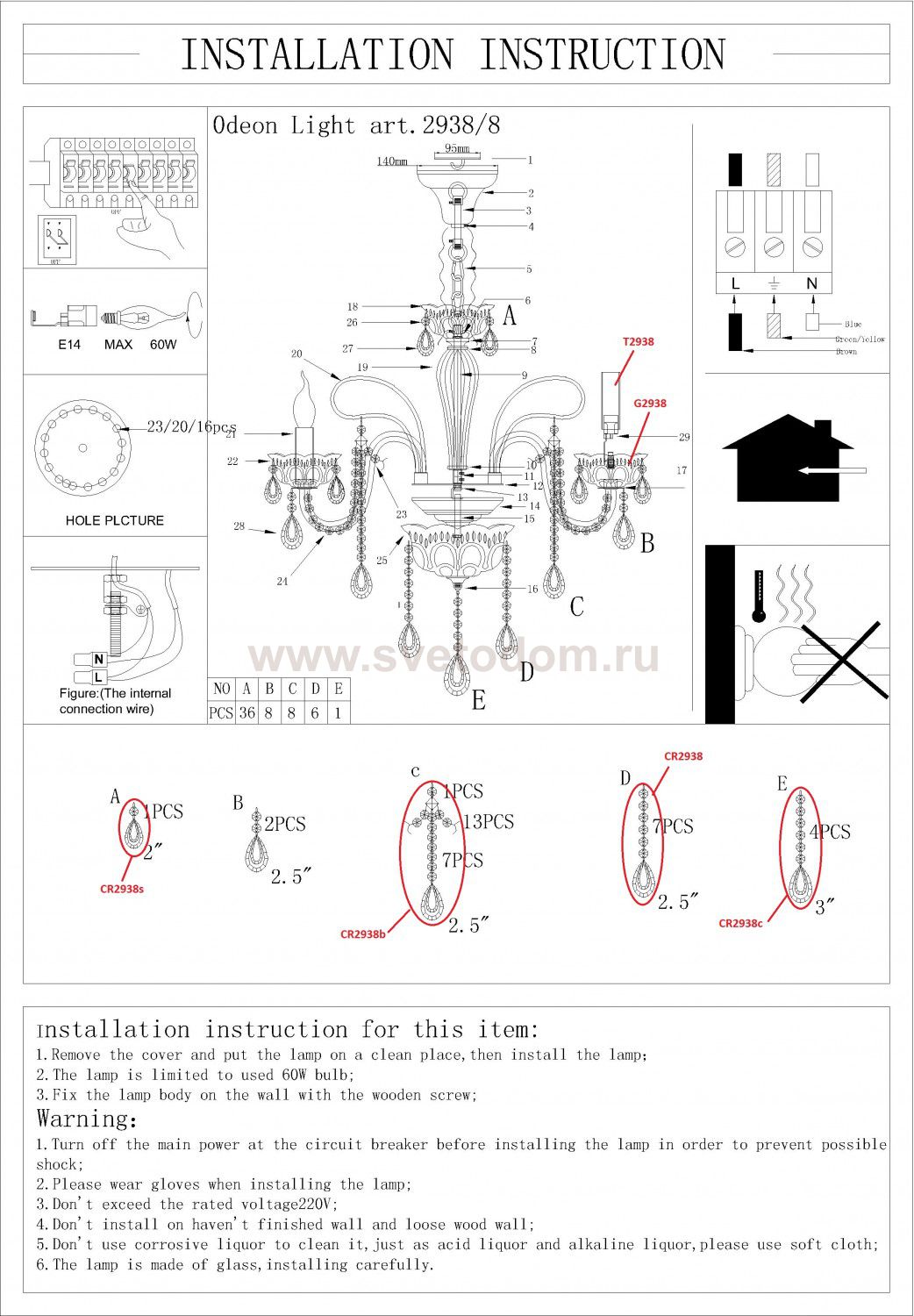 Практически для каждой люстры производитель указывает максимальную мощность лампочки. Это связано с тем, что при работе лампы выделяется значительное количество тепла. Если установить лампу большей мощности, то это может привести к деформации и порче люстры, разрушению патрона.