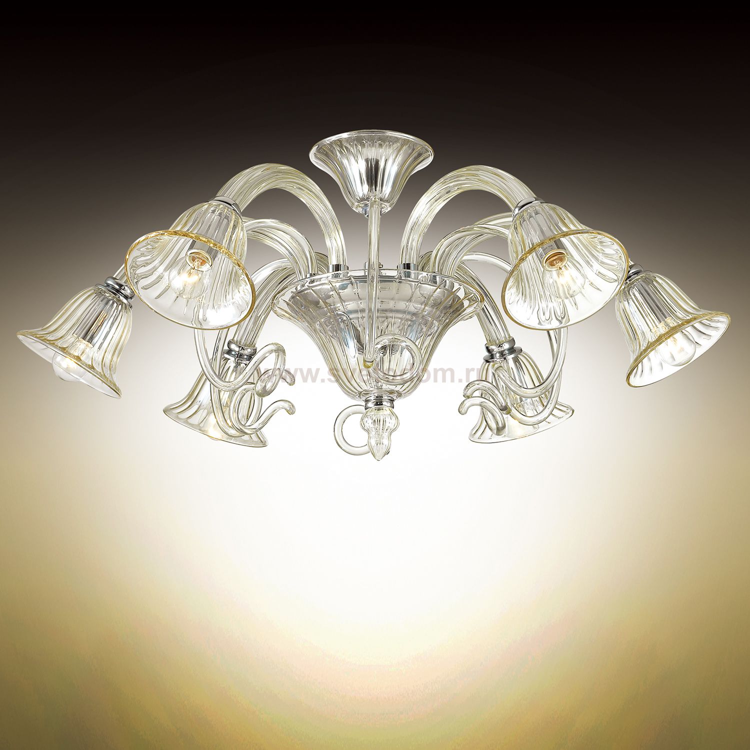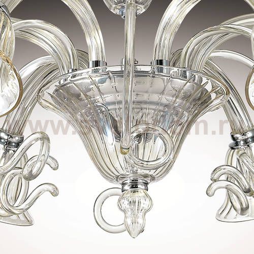 плафон: стекло ручной работы в стиле Murano glass прозрачное с золотистым оттенком, арматура: металл, декор: стеклянные декоративные элементы Материал плафона