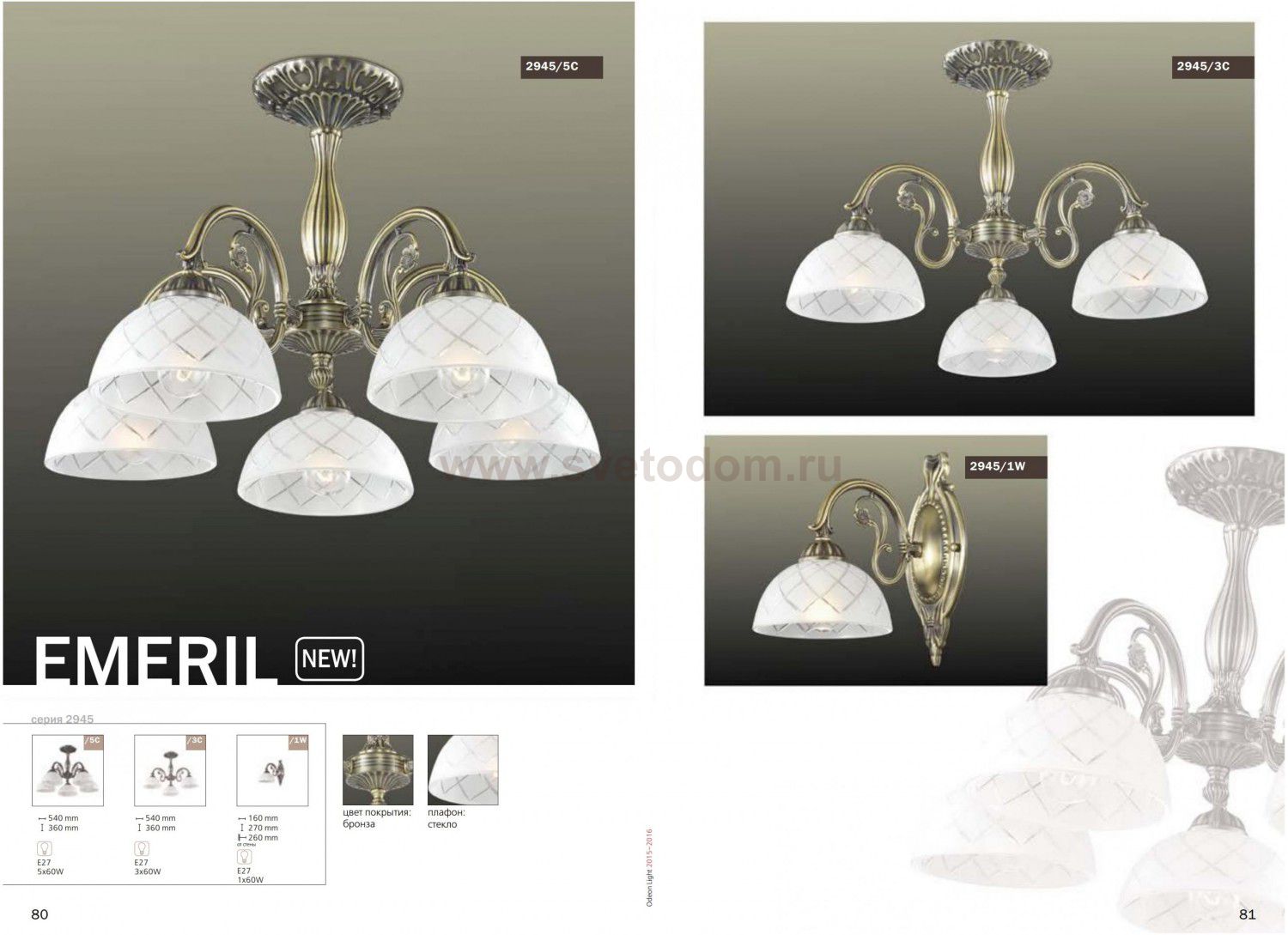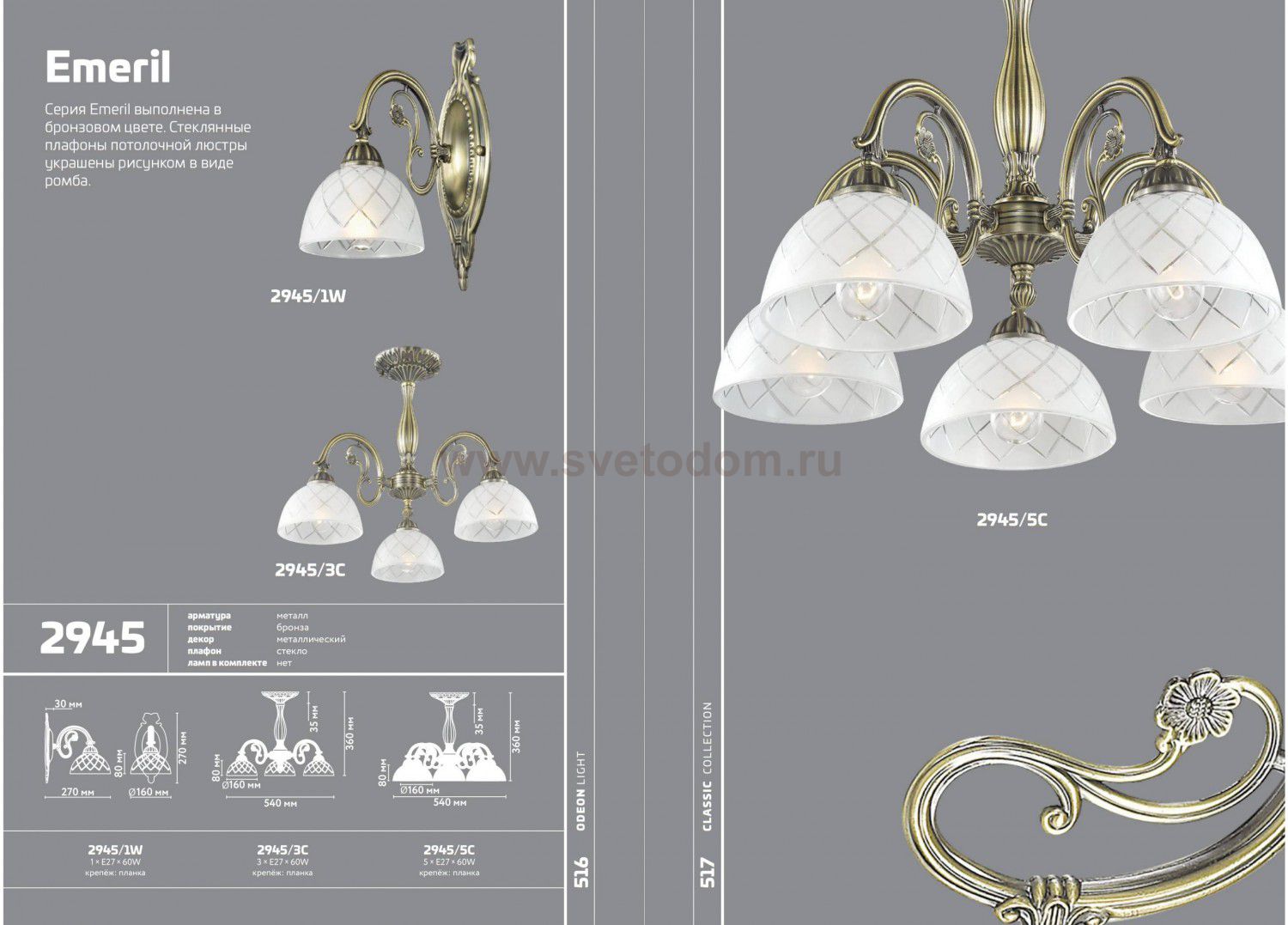 В данном разделе интернет-магазина Светодом Вы сможете купить для освещения дома грациозную модель - Люстра 2945/3С серии Emaril выполнена в бронзовом цвете. Стеклянные плафоны потолочной люстры украшены рисунком в виде ромба. Цоколь Е27. Мощность 3х60W. Нет ламп в комплекте.