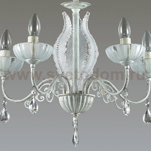 Арматура, декор: металлическая арматура украшена декоративными элементами из стекла пиастро, хрустальными подвесками; плафон: стекляннной блюдце под лампу-свечку Комментарий