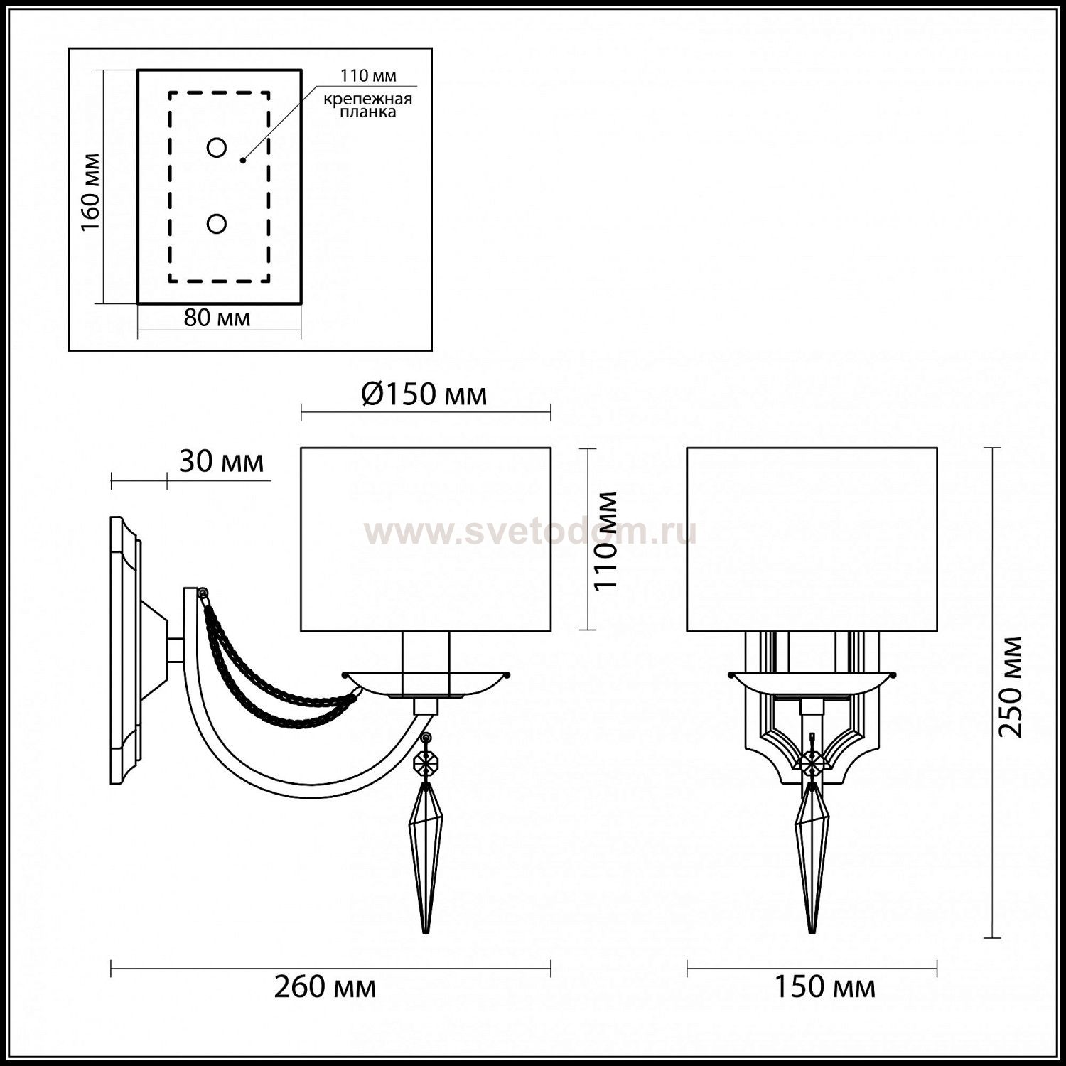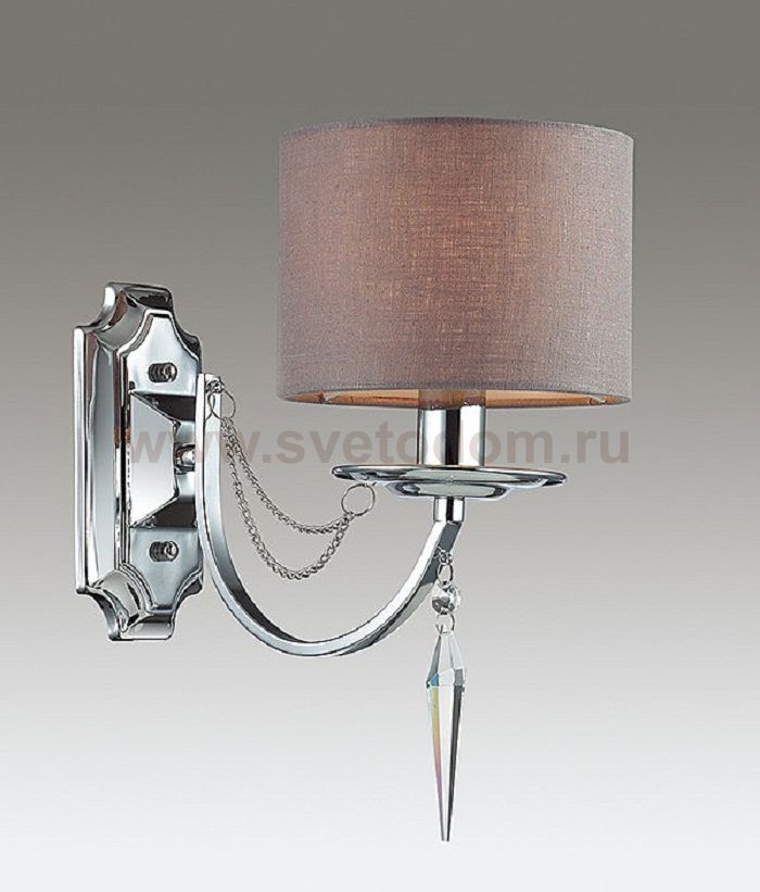 Арматура, декор: декоративные металлические цепочки, хрустальная подвеска; плафон: тканевый абажур Материал плафона
