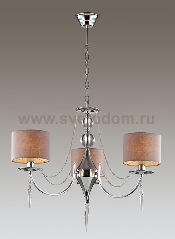Отличный вариант домашнего освещения Odeon light Люстра 3210/3 серии OFELIA оформлена в современном стиле. Люстра состоит из арматуры хромового цвета, украшенной металлическими цепочками и подвесками из хрусталя заостренной формы, и тканевых абажуров. Данная модель обладает сдержанным лоском за счет сочетания классических изгибов с современными цветовыми решениями. Цоколь E14. Мощность 3*40W. Нет ламп в комплекте.