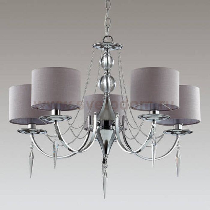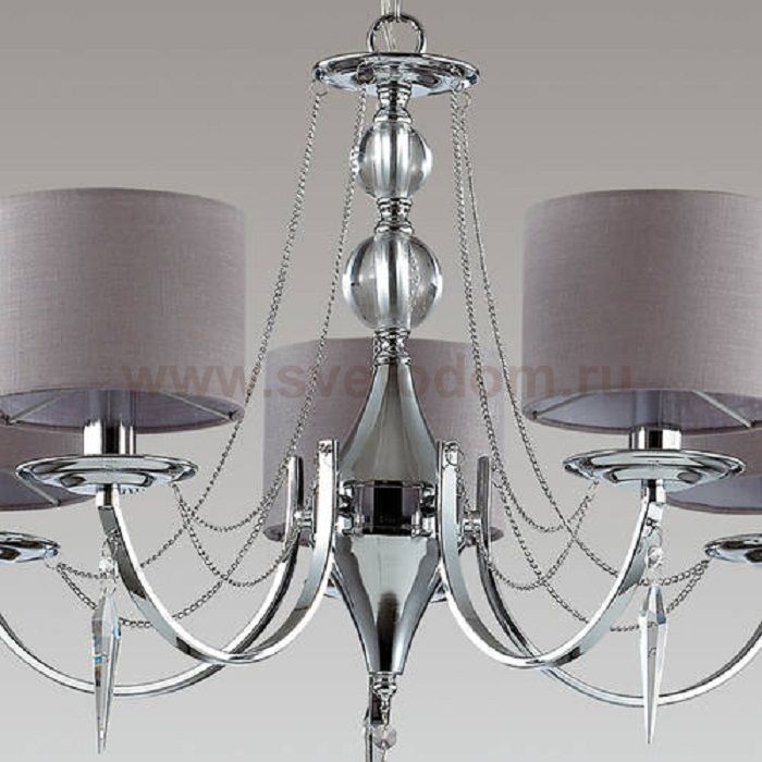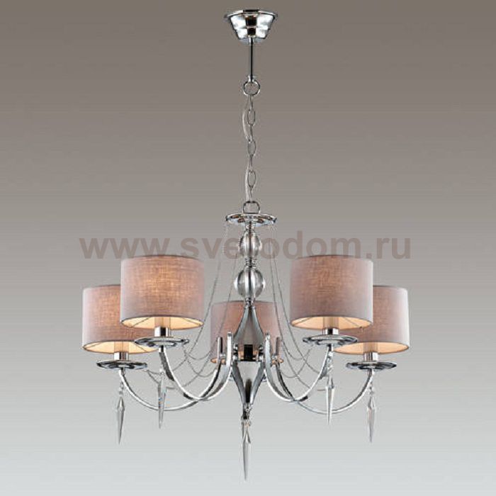 Люстра 3210 / 5 линии OFELIA оформлена в современном стиле. Люстра состоит из арматуры хромового цвета, украшенной металлическими цепочками и подвесками из хрусталя заостренной формы, и тканевых абажуров. Данная модель обладает сдержанным лоском за счет сочетания классических изгибов с современными цветовыми решениями. Цоколь E14. Мощность 5*40W. Нет ламп в комплекте.