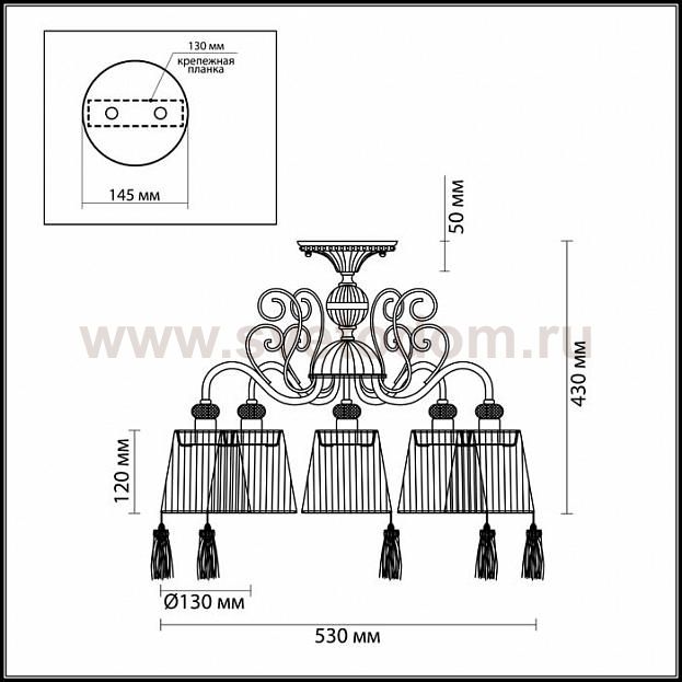 арматура, декор: ажурные металлические элементы, декоративные кисточки; плафон: тканевый абажур Комментарий