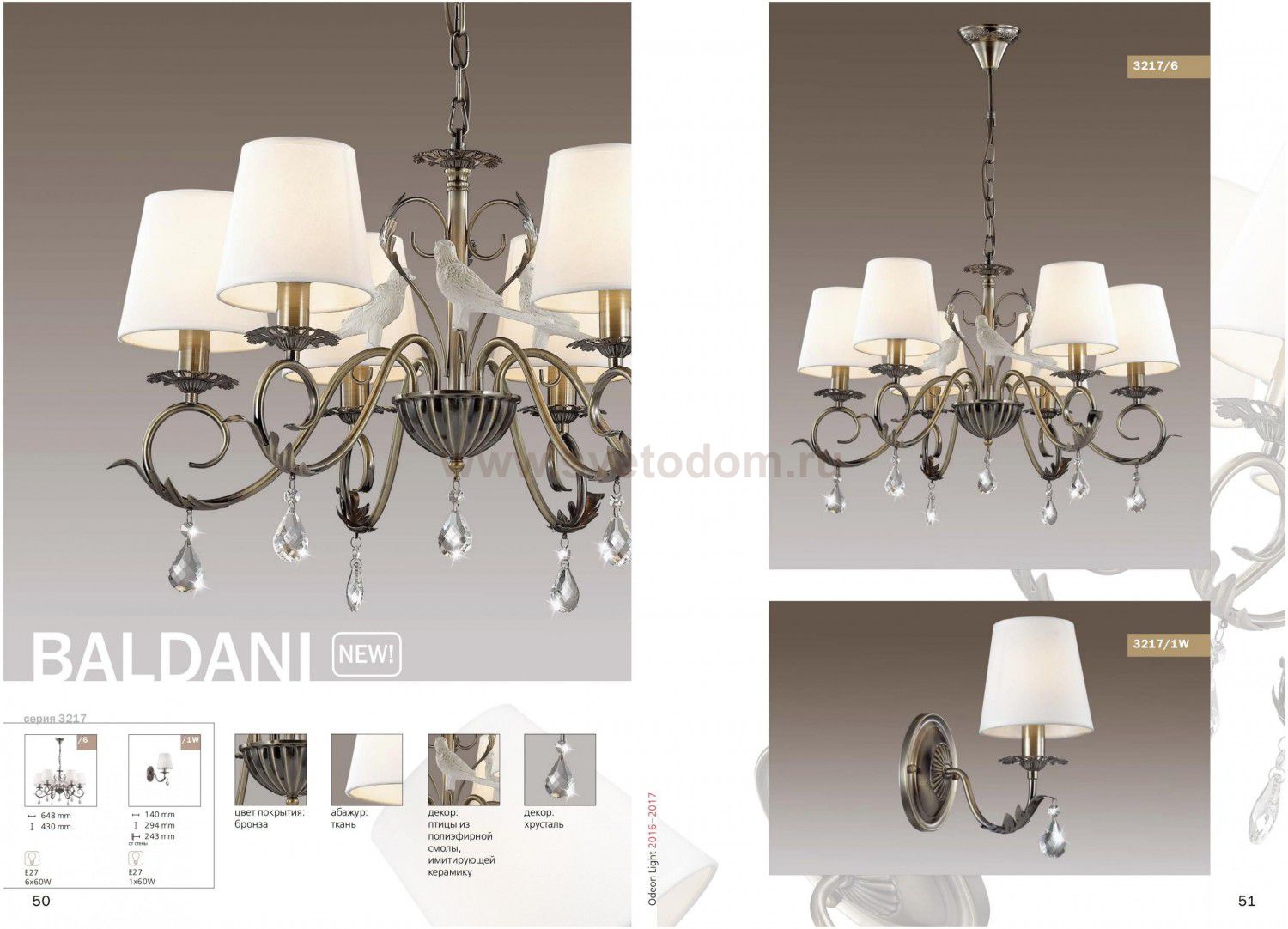Отличный вариант домашнего освещения Odeon light Бра 3217/1W серии BALDANI оформлена в классическом стиле. Светильник состоит из арматуры классического бронзового цвета, украшенной хрустальными подвесками, и тканевого абажура белого цвета. Очень элегантная традиционная модель станет непревзойденным украшением Вашей комнаты. Цоколь E14. Мощность 1*60W. Нет ламп в комплекте.
