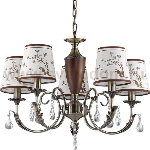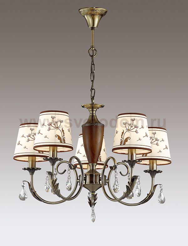 Отличный вариант домашнего освещения Odeon light Люстра 3220/5 серии GABINNA оформлена в классическом стиле. Люстра состоит из арматуры бронзового цвета с хрустальными подвесками и деревянным декоративным элементом и пастельных тканевых абажуров с цветочным рисунком. Данная модель станет прекрасным дополнением Вашему стильному интерьеру. Цоколь E14. Мощность 5*40W. Нет ламп в комплекте.