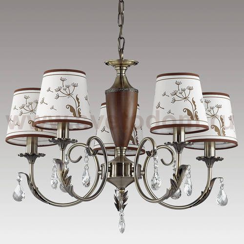 Арматура, декор: металл, дерево, хрустальные подвески, центральная штанга украшена деревянным элементом; плафон: тканевый абажур с цветочным рисунком Материал плафона