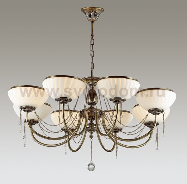 Отличный вариант домашнего освещения Odeon light Люстра 3227/8 серии LORRA оформлена в классическом стиле. Люстра состоит из стеклянных плафонов с рисунком, украшенных металлическим ободком, и классической арматуры бронзового цвета, декорированной цепочками с хрустальными подвесками. Традиционная модель, дополненная актуальными деталями поражает своей неотразимостью и великолепием. Цоколь E27. Мощность 8*60W. Нет ламп в комплекте.