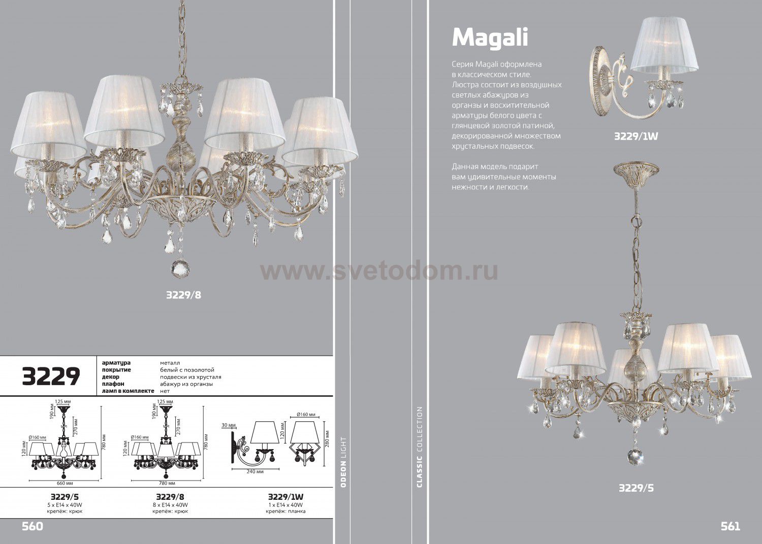 Бра 3229/1W линии MAGALI оформлена в классическом стиле. Светильник состоит из воздушного светлого абажура из органзы и восхитительной арматуры белого цвета с глянцевой золотой патиной, декорированной множеством хрустальных подвесок. Данная модель подарит Вам удивительные моменты нежности и легкости. Цоколь E14. Мощность 1*40W. Нет ламп в комплекте.