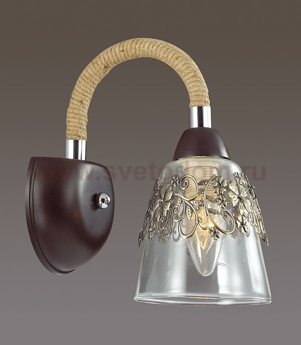 Арматура, декор: металлическая арматура украшена канатной нитью; плафон: прозрачное стекло с металлическим ажурным декором Комментарий