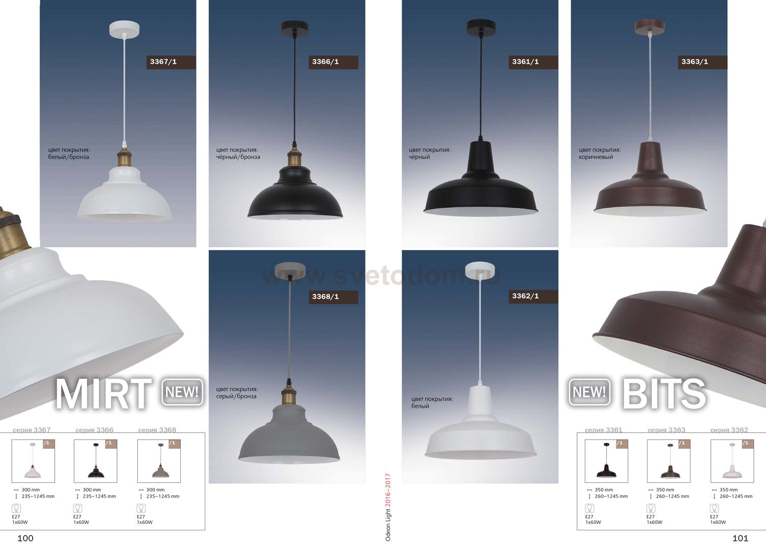3361/1 PENDANT ODL17 315 темно-серый Подвес E27 60W 220V BITS Штрих-код