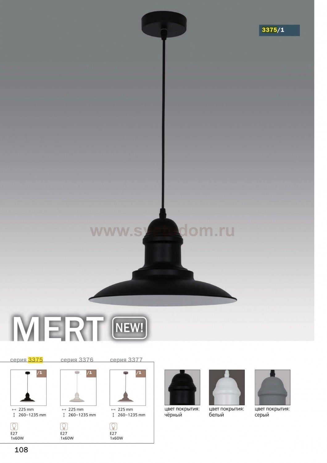 3375/1 PENDANT ODL17 317 темн.серый/металл Подвес E27 60W 220V MERT Штрих-код