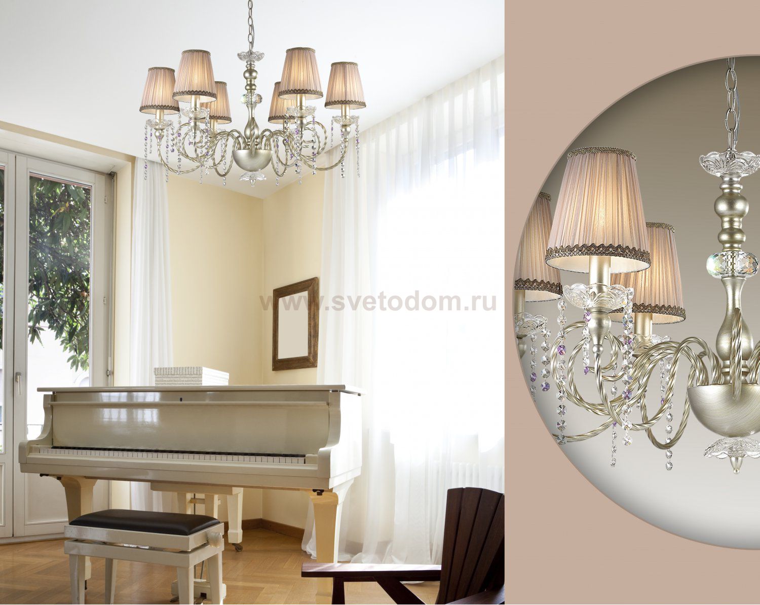Люстра 3390 / 6 линии Aurelia оформлена в классическом стиле. Основание светильника из металла с покрытием "матовое золото" с серебристой патиной. Люстра украшена декоративным элементом в виде массивного хрусталя с точеными гранями, прозрачными стеклянными чашами, хрустальными подвесками и абажуром из тонкой плиссированной ткани нежного пурпурного оттенка. Роскошное сочетание цветов и материалов ассоциируется с благородством, изобилием и достатком, и несомненно подчеркнет хороший тонкий вкус своего обладателя. Цоколь E14. Мощность 6*40W. Нет ламп в комплекте.