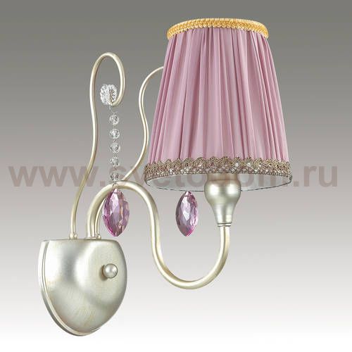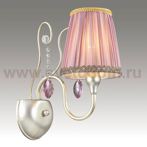 Бра 3393/1W линии Gaellori выполнено в изысканном цвете "матовое серебро", основание состоит из изящного рожка и металлических изогнутых элементов. Абажур выполнен из тонкой плиссированной ткани нежного лилового оттенка, волшебный свет от которого будет действовать умиротворяюще, успокаивающе, окутает своей нежностью и необыкновенной загадочностью. Рожок украшен необычными хрустальными подвесками цвета "аметист". Цоколь E14. Мощность 1*40W. Нет ламп в комплекте.